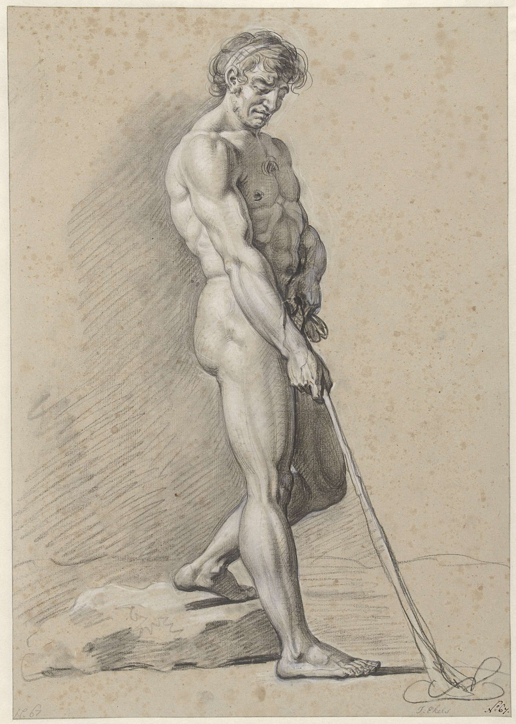 Staand mannelijk naakt met kolfstok. Nr. 67.