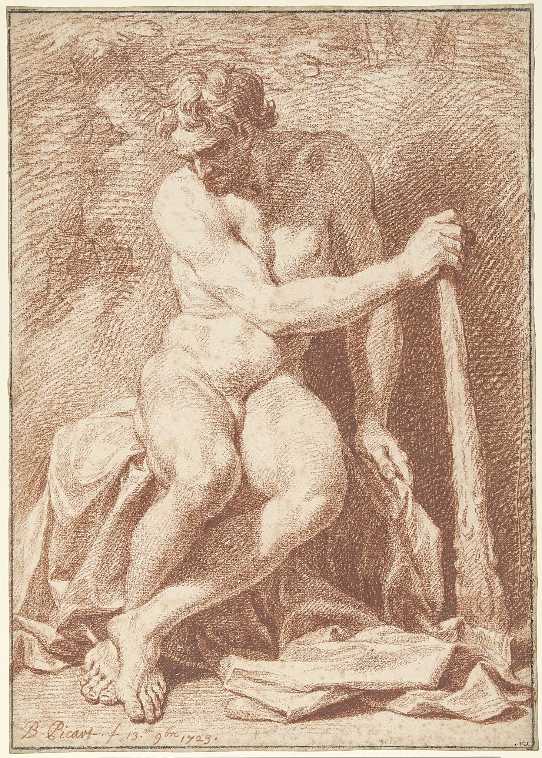 Zittend mannelijk naakt, met knots