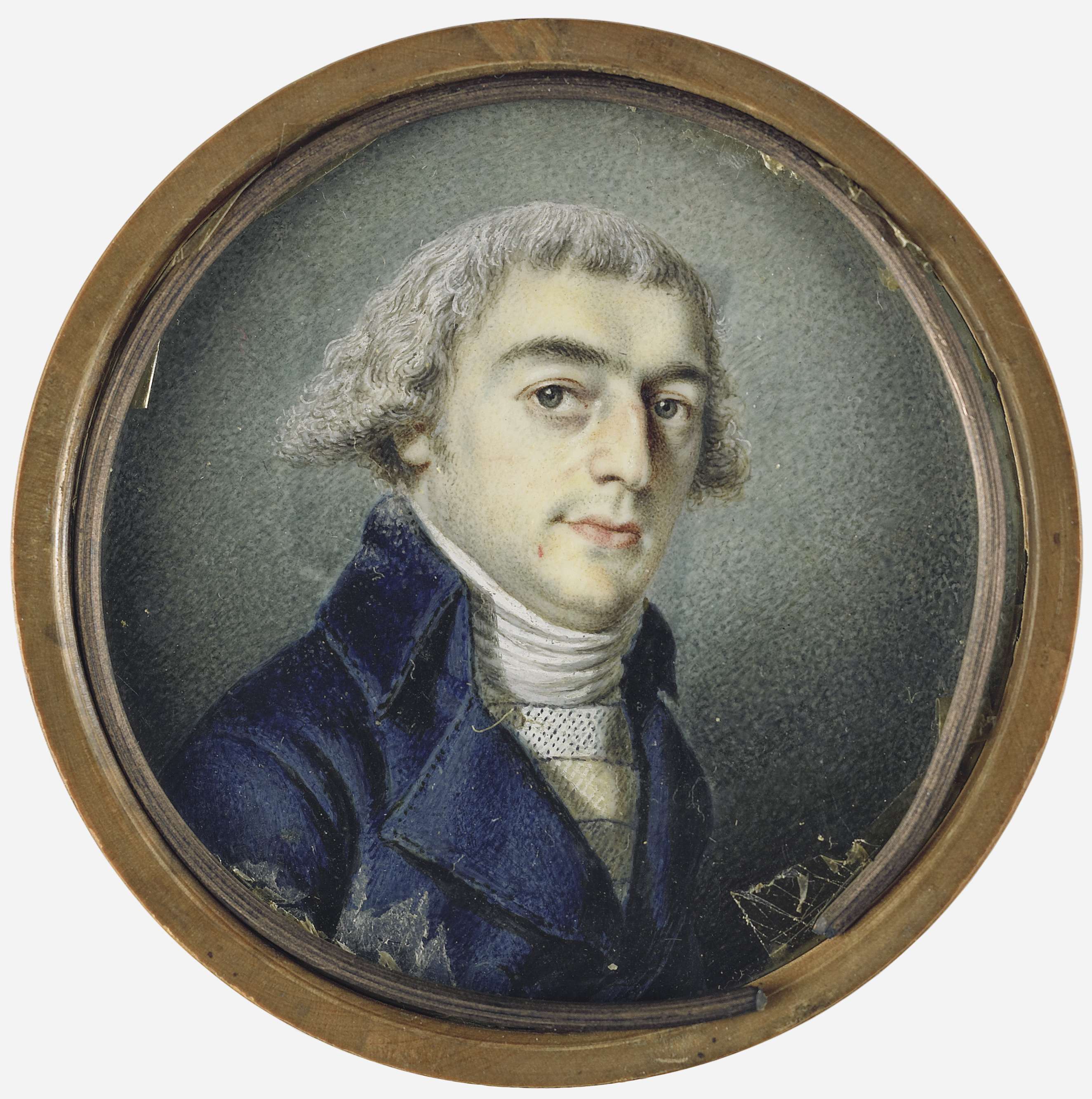 Portret van een man. Buste, naar rechts, de blik naar de beschouwer gekeerd. Onderdeel van de collectie portretminiaturen.