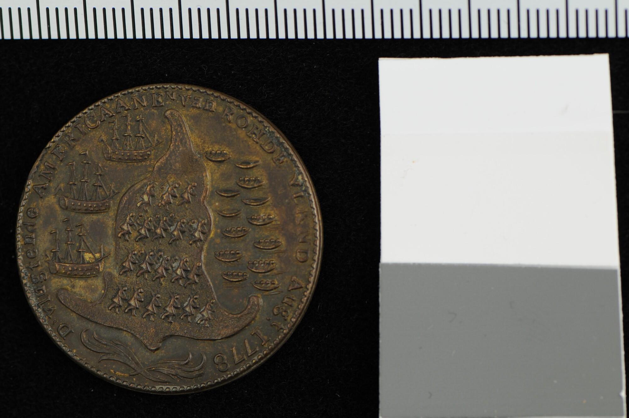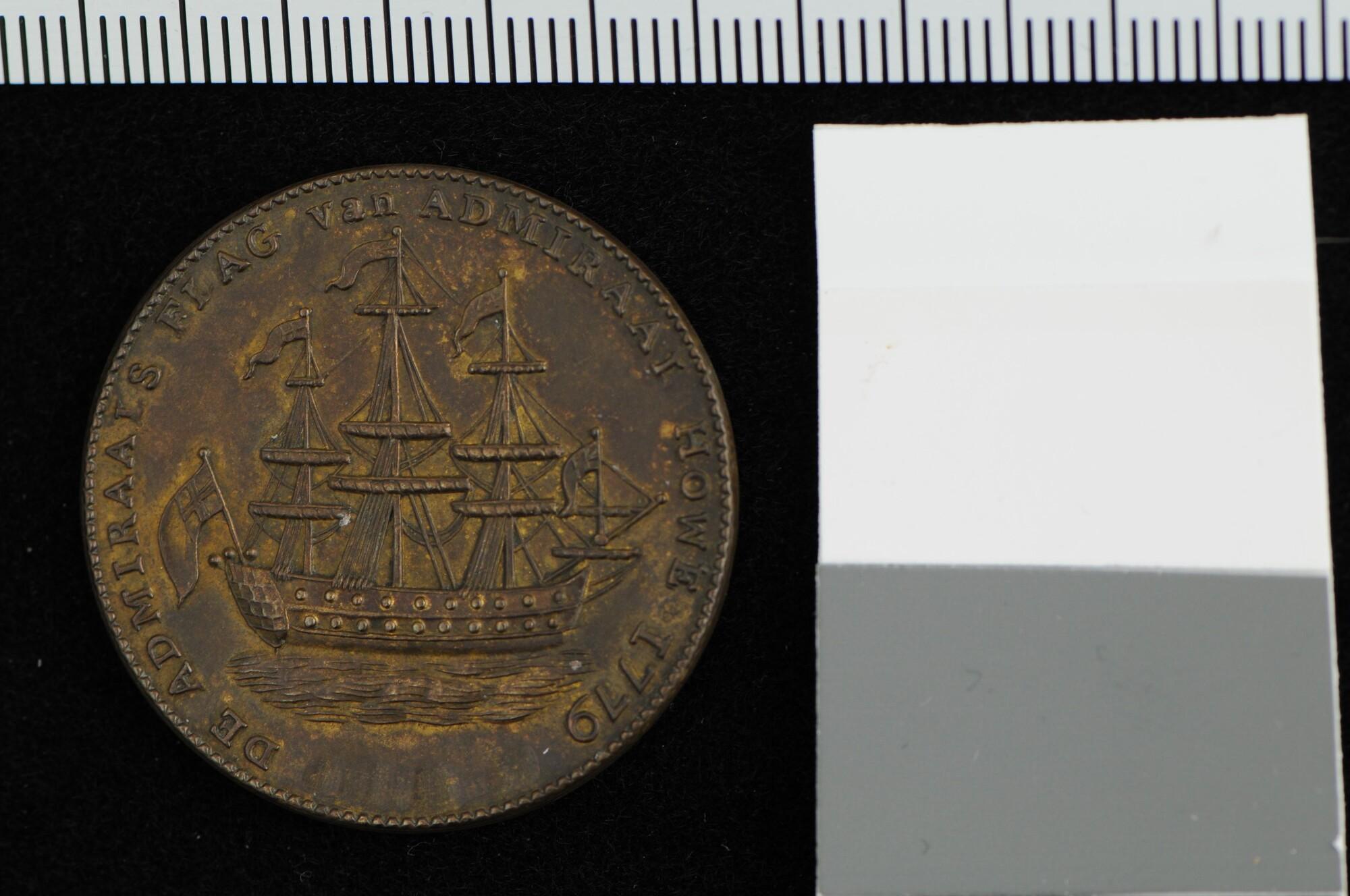 Engelse penning geslagen op admiraal Howe en de verdrijving van de Amerikanen van Rhode Island, 1779