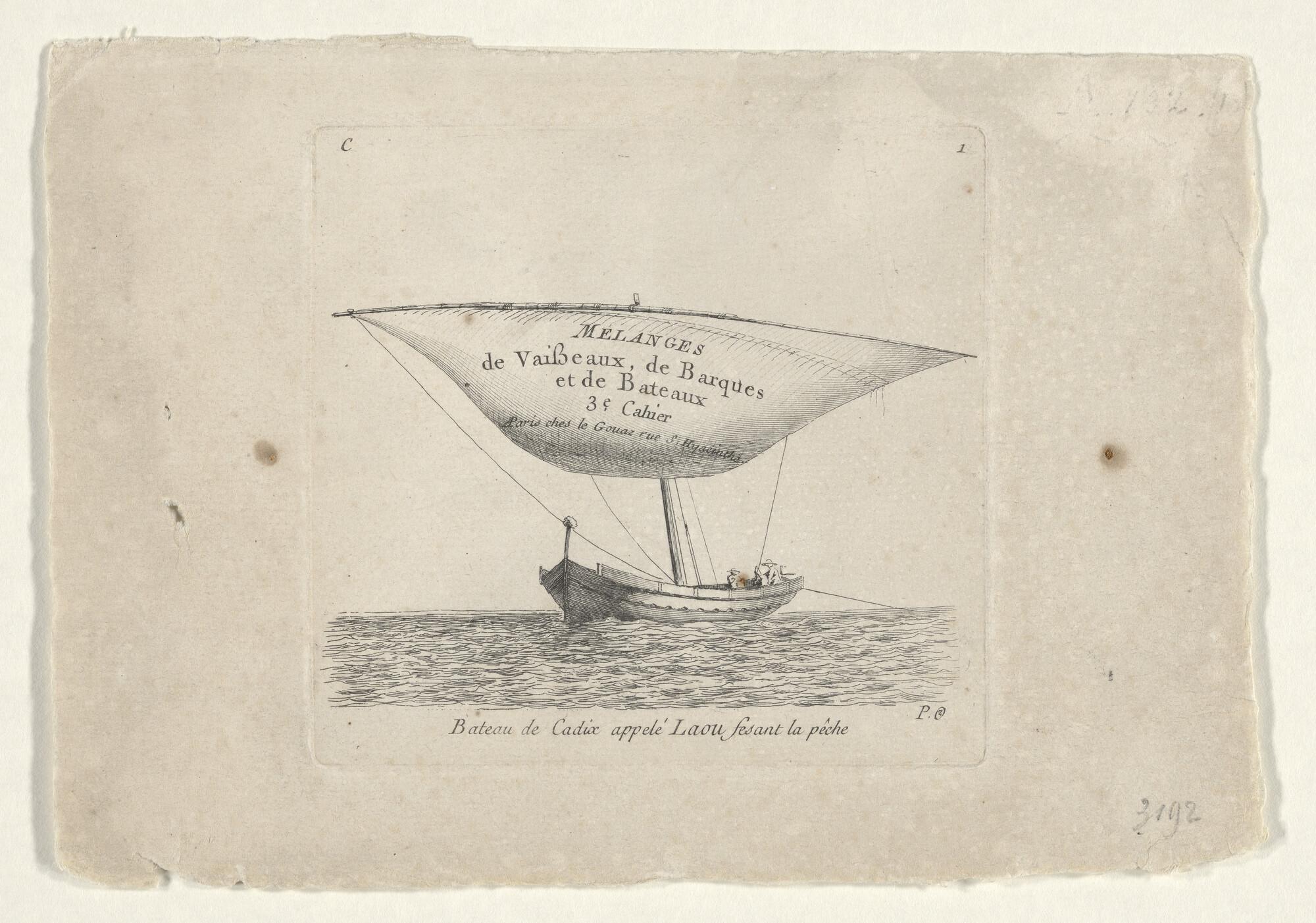 Titelblad van de serie 'Mélanges de vaisseaux de barques et de bateaux', III Cahier: bestaat uit 12 figuren [C1 t/m C12].