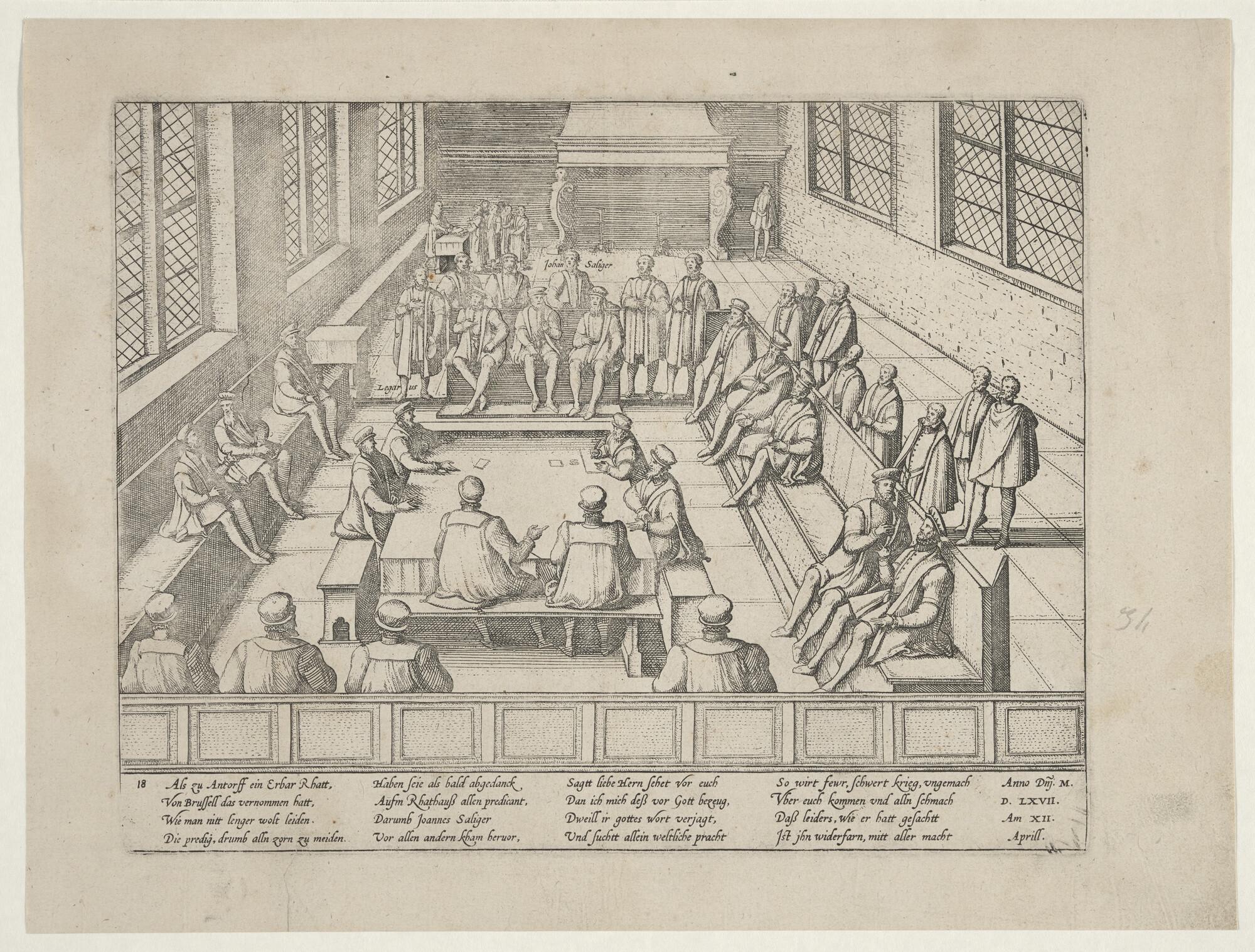 Het prediken aan de Protestanten te Antwerpen verboden: op het Raadhuis worden de predikanten ontslagen, waaronder Johannes Scaliger, 11 april 1567.