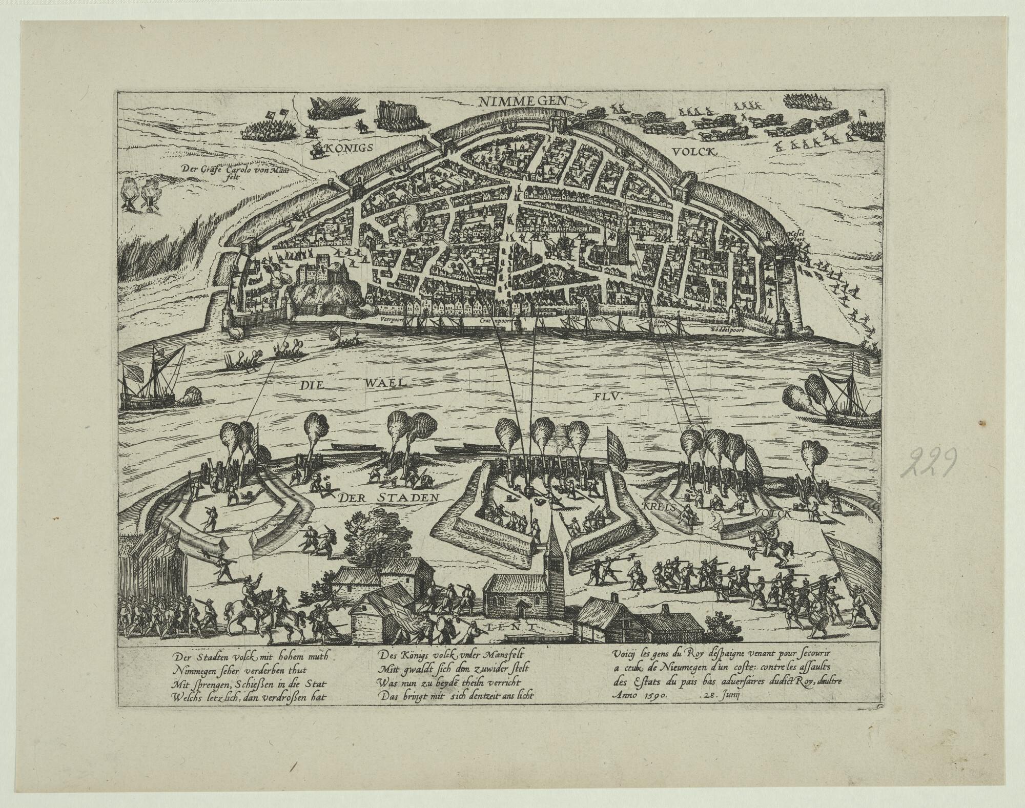 Nijmegen uit Knodsenburg door Maurits belegerd, 28 juni 1590.