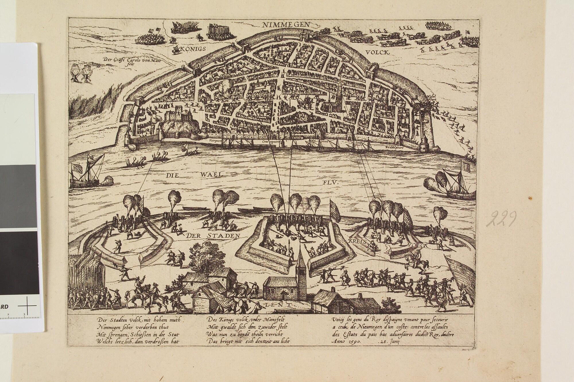 Nijmegen uit Knodsenburg door Maurits belegerd, 28 juni 1590