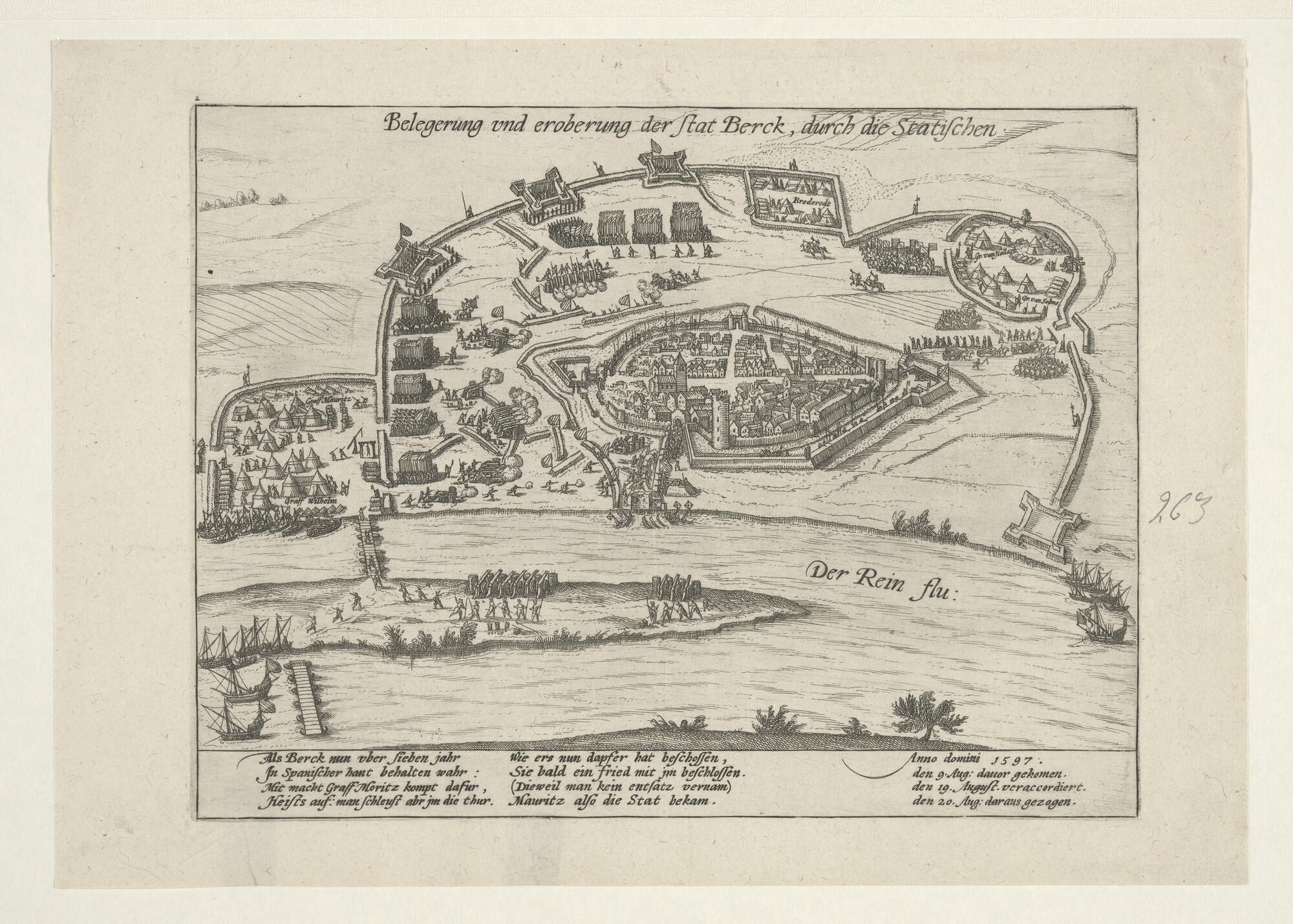Maurits belegert en neemt Rijnberk, 20 augustus 1597.