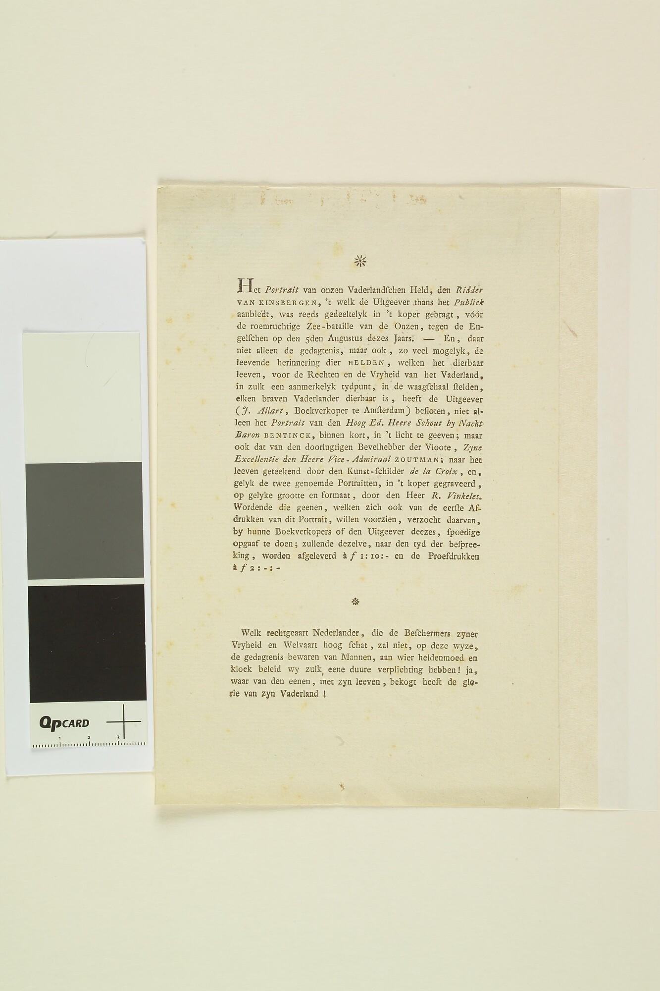 Tekst behorende bij het portret van J.H. Van Kinsbergen