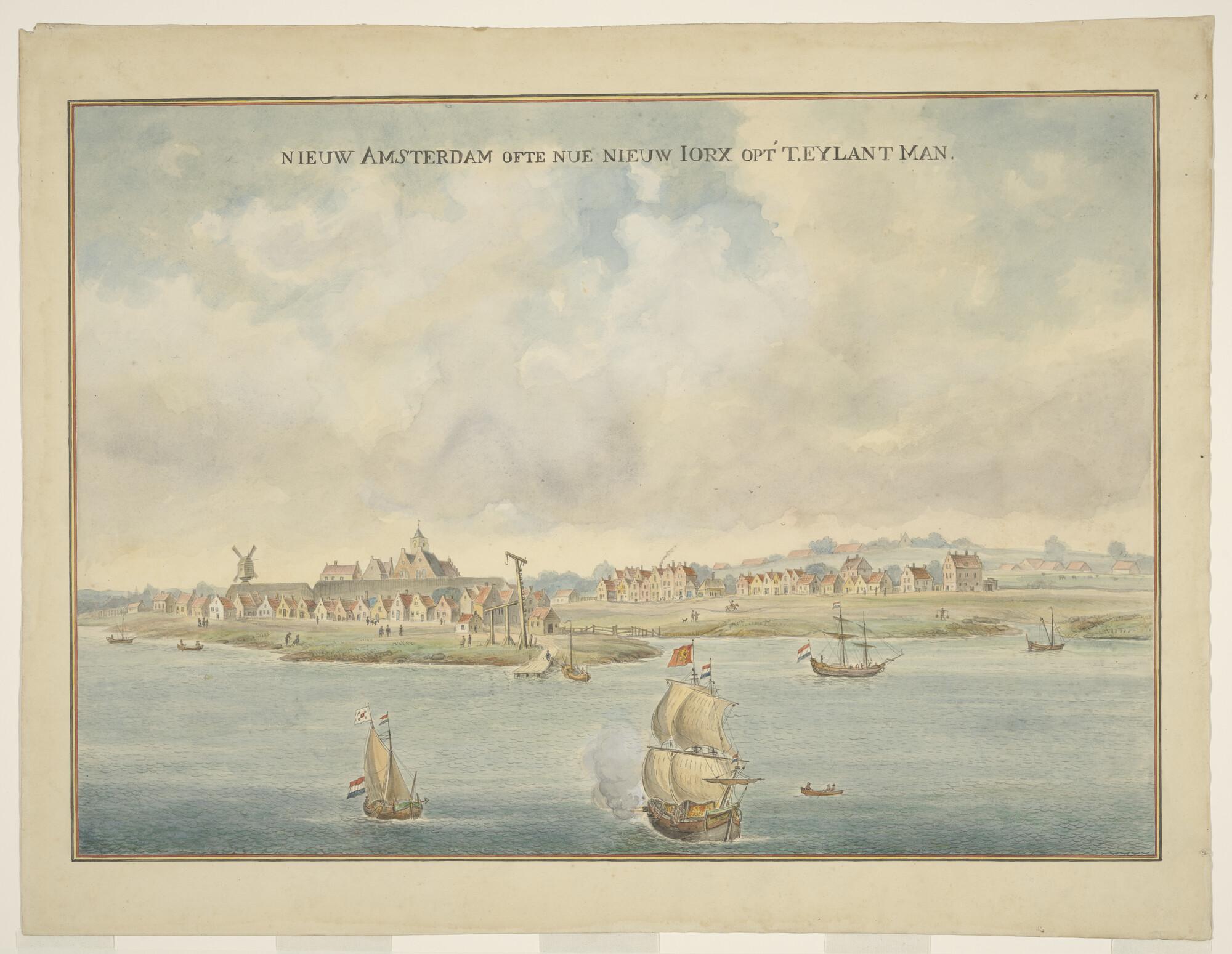 Nieuw Amsterdam of New York op het eiland Manhattan, reproductie naar de originele tekening in het Nationaal Archief.