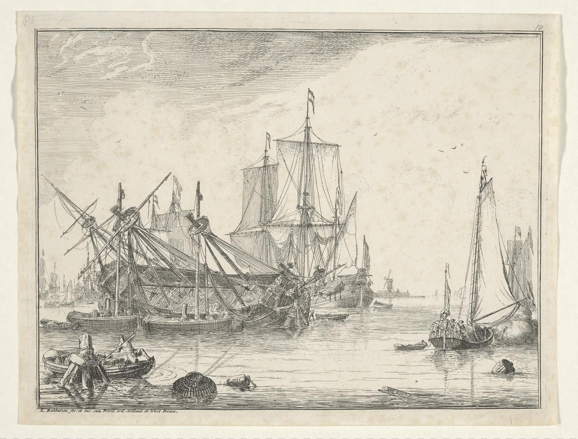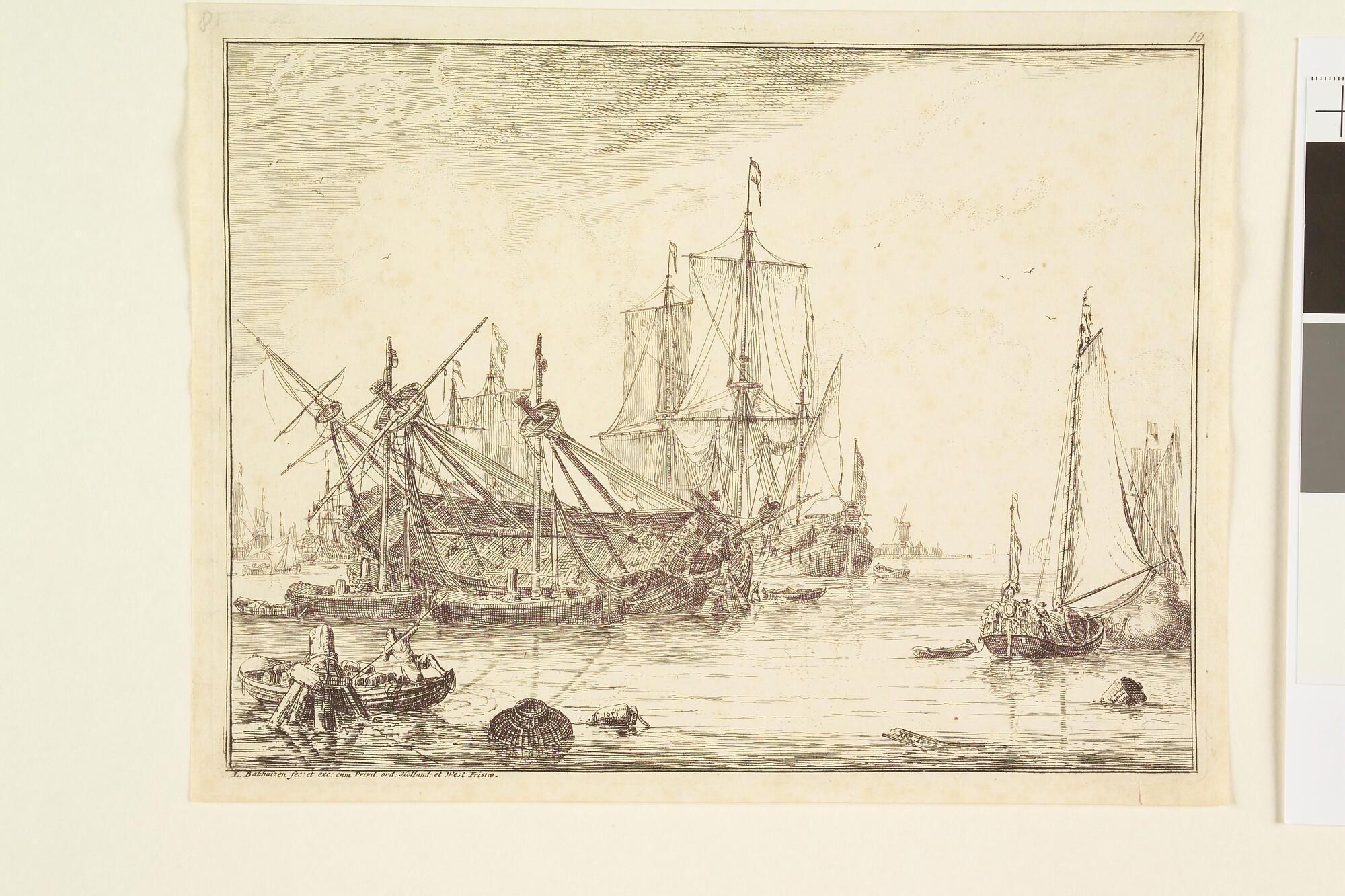 Uit de serie D'Y Stroom en Zeegezichten: Kielen van een schip. Rechts een speeljacht.