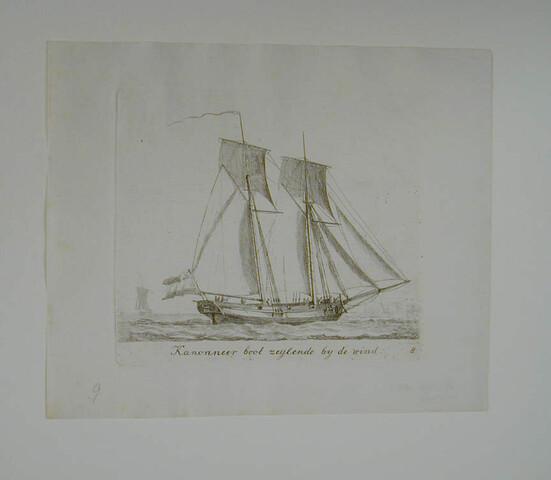 Prent van een kanonneerboot. Uit de suite 'Verscheide Soorten van Schepen en Vaartuijgen', nummer 8.