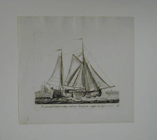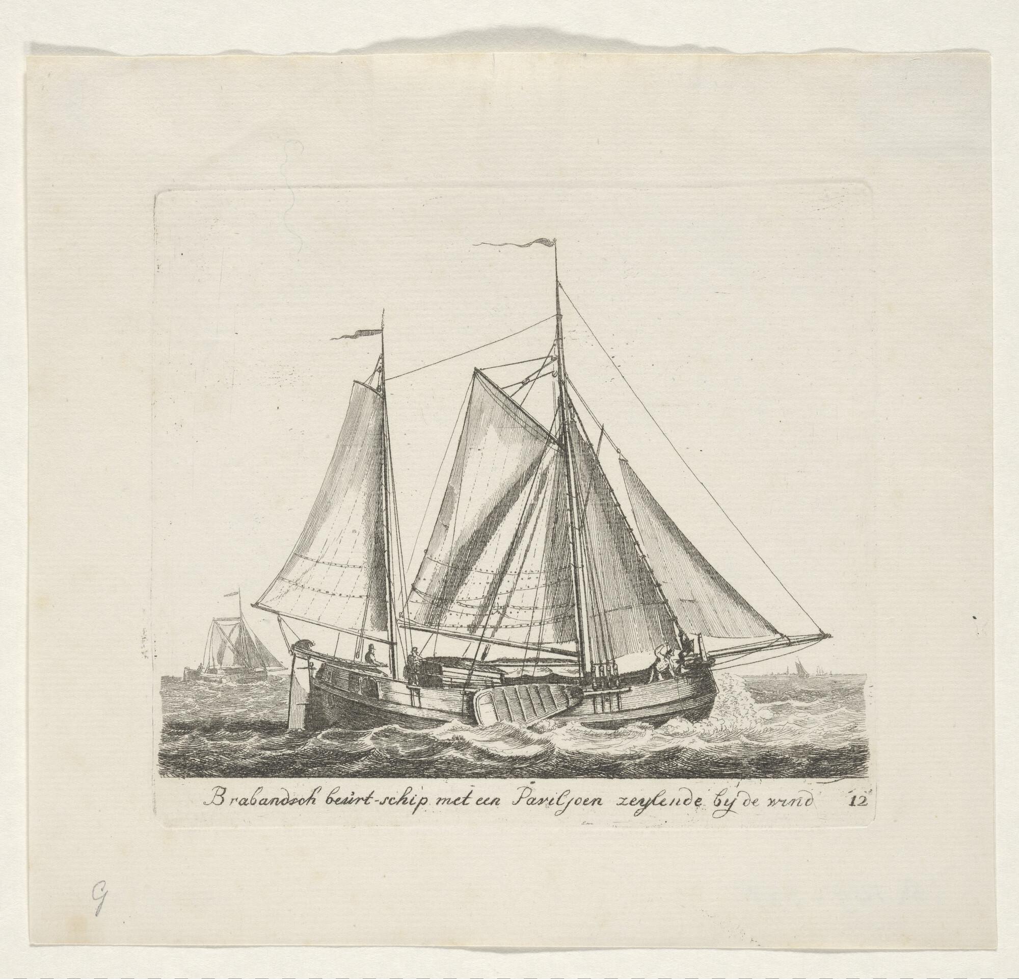Prent van een Brabants beurtschip. Uit de suite 'Verscheide Soorten van Schepen en Vaartuijgen', nummer 12.