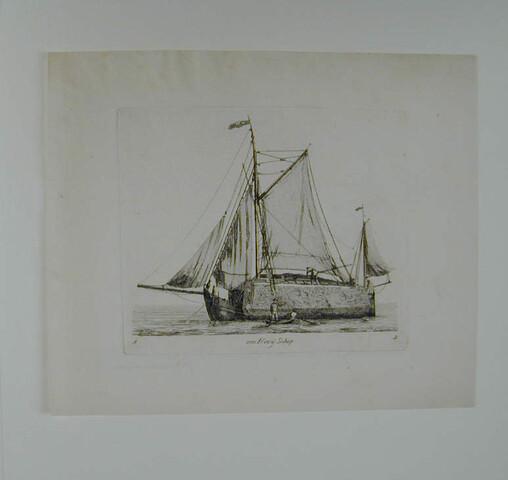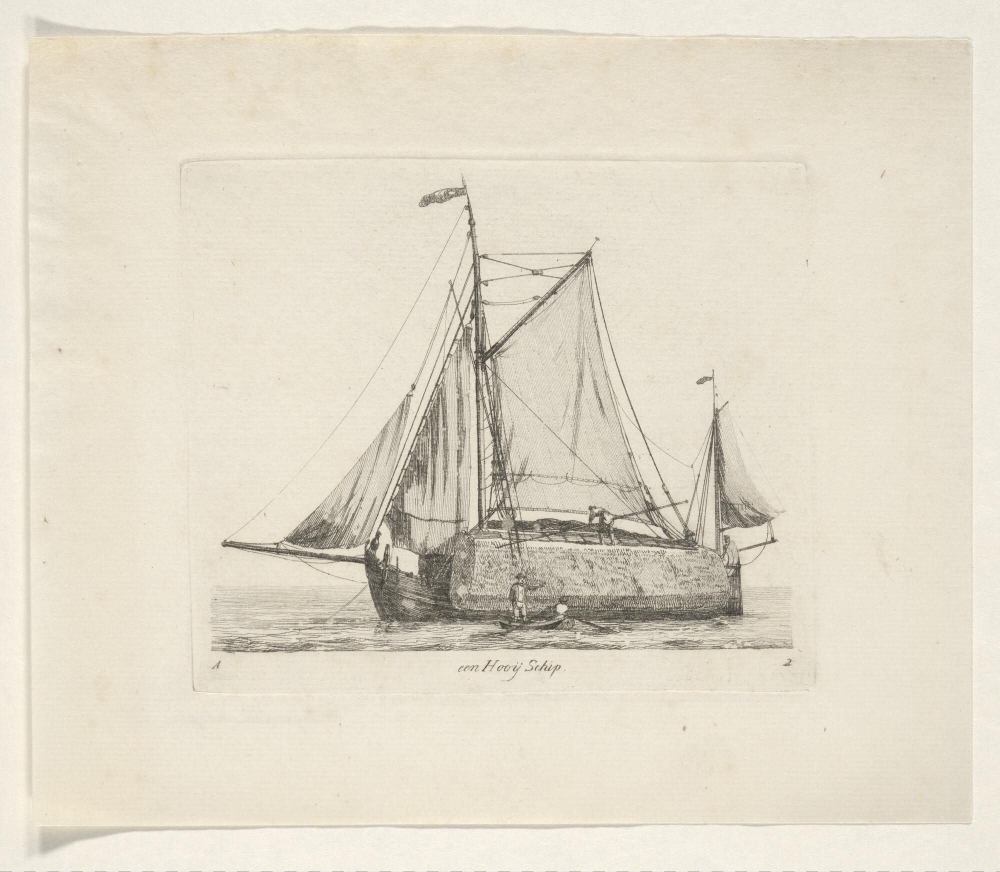 Prent van een hooischip. Uit de suite "Verscheide soorten van Hollandse vaartuigen", 1ste katern, A-2.