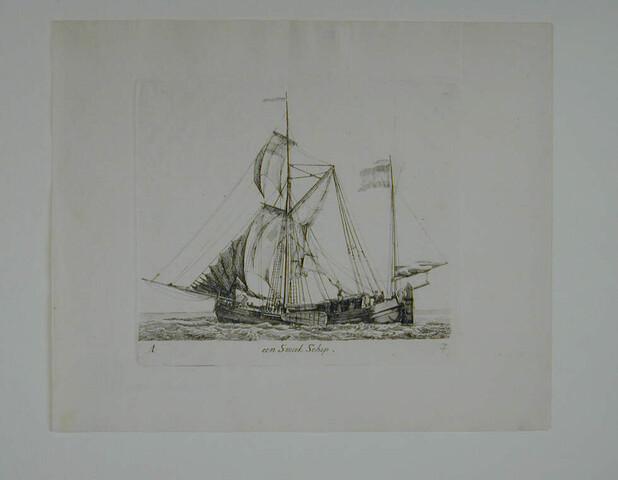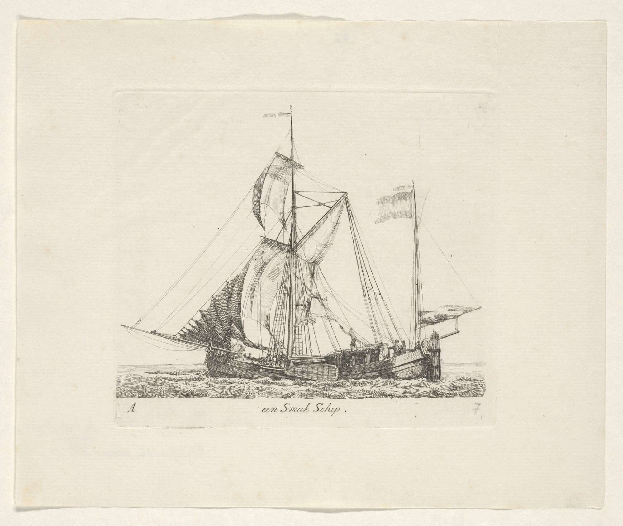 Prent van een smakschip. Uit de suite "Verscheide soorten van Hollandse vaartuigen", 1ste katern, A-7.
