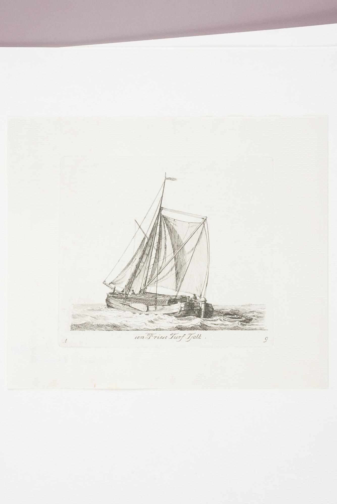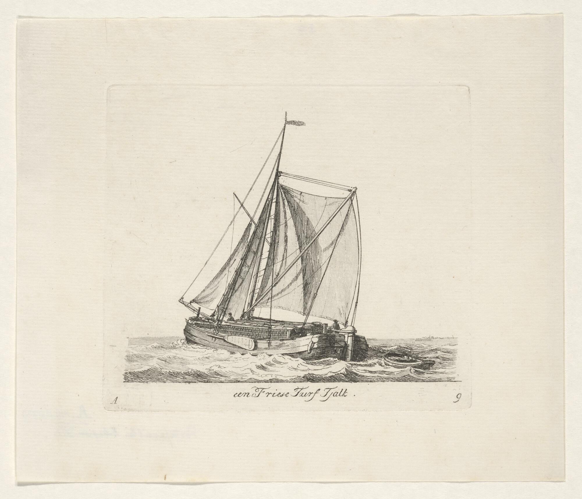 Prent van een Friese turftjalk. Uit de suite "Verscheide soorten van Hollandse vaartuigen", 1ste katern, A-9.
