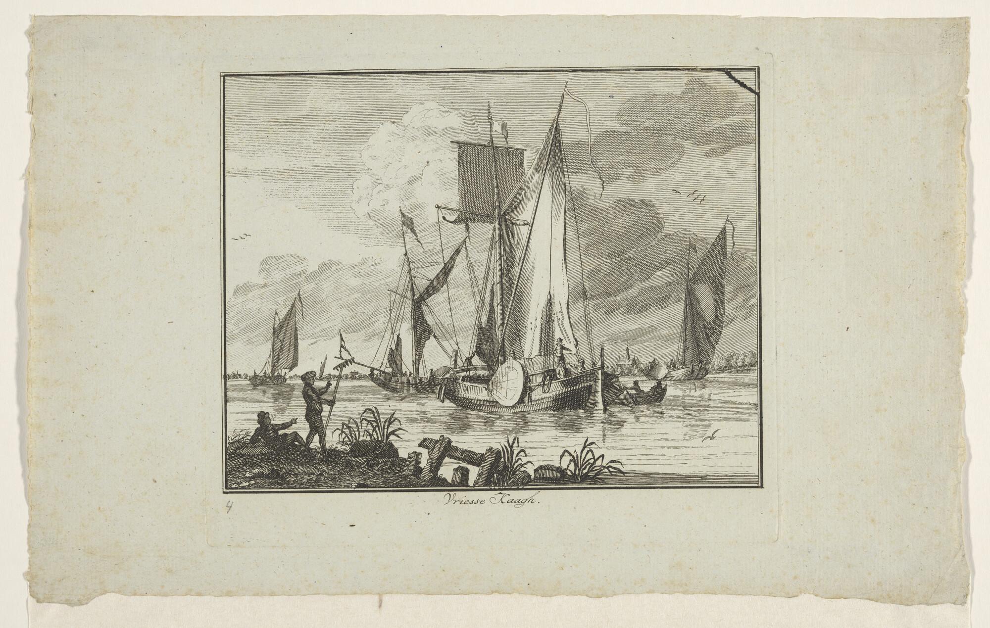 Prent uit een suite van 16 (?) afbeeldingen van in- en uitheemse vaartuigen: een Friese kaag.