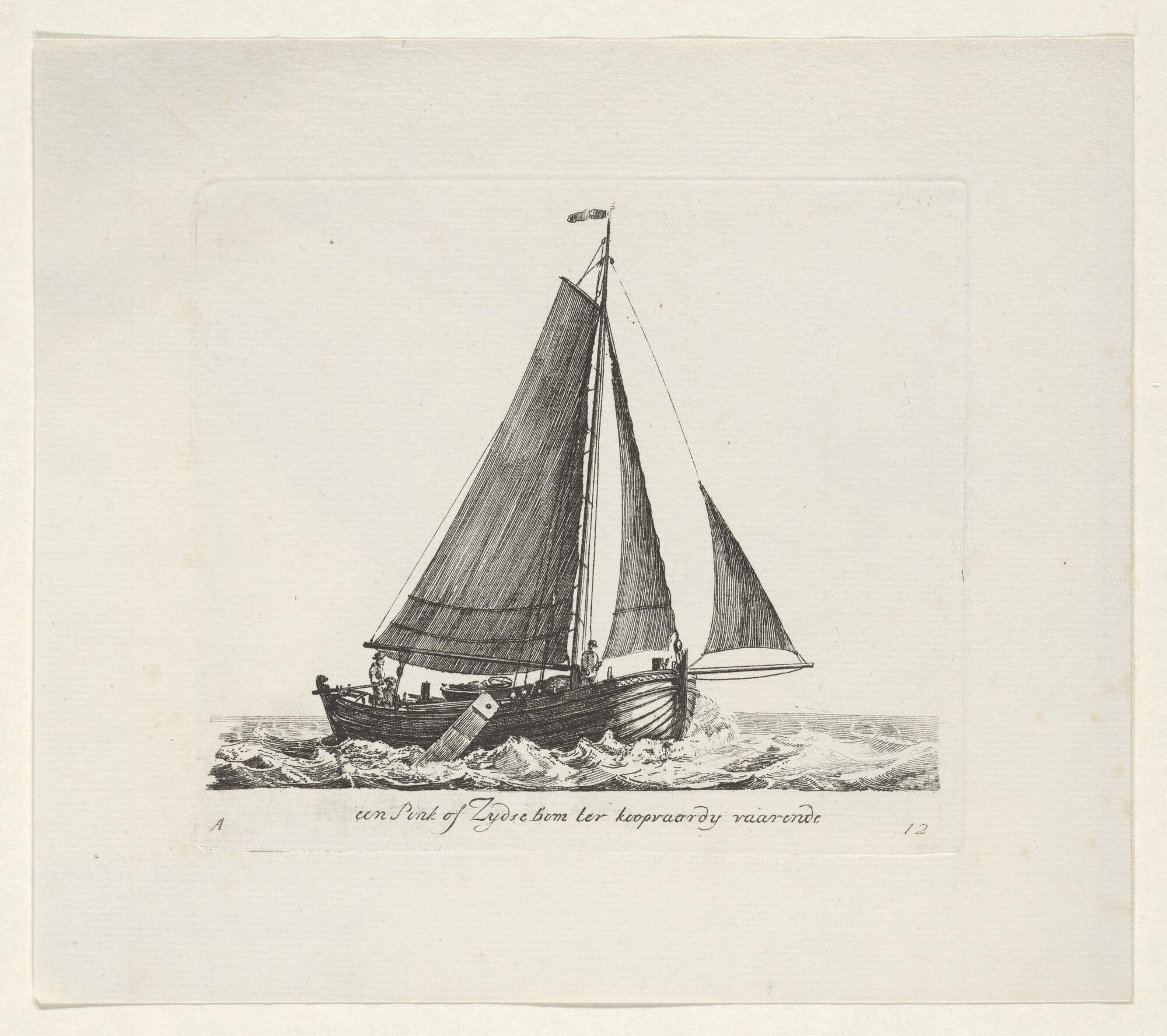 Prent van een pink of Zijdse bom. Uit de suite "Verscheide soorten van Hollandse vaartuigen", 1ste katern, A-12.