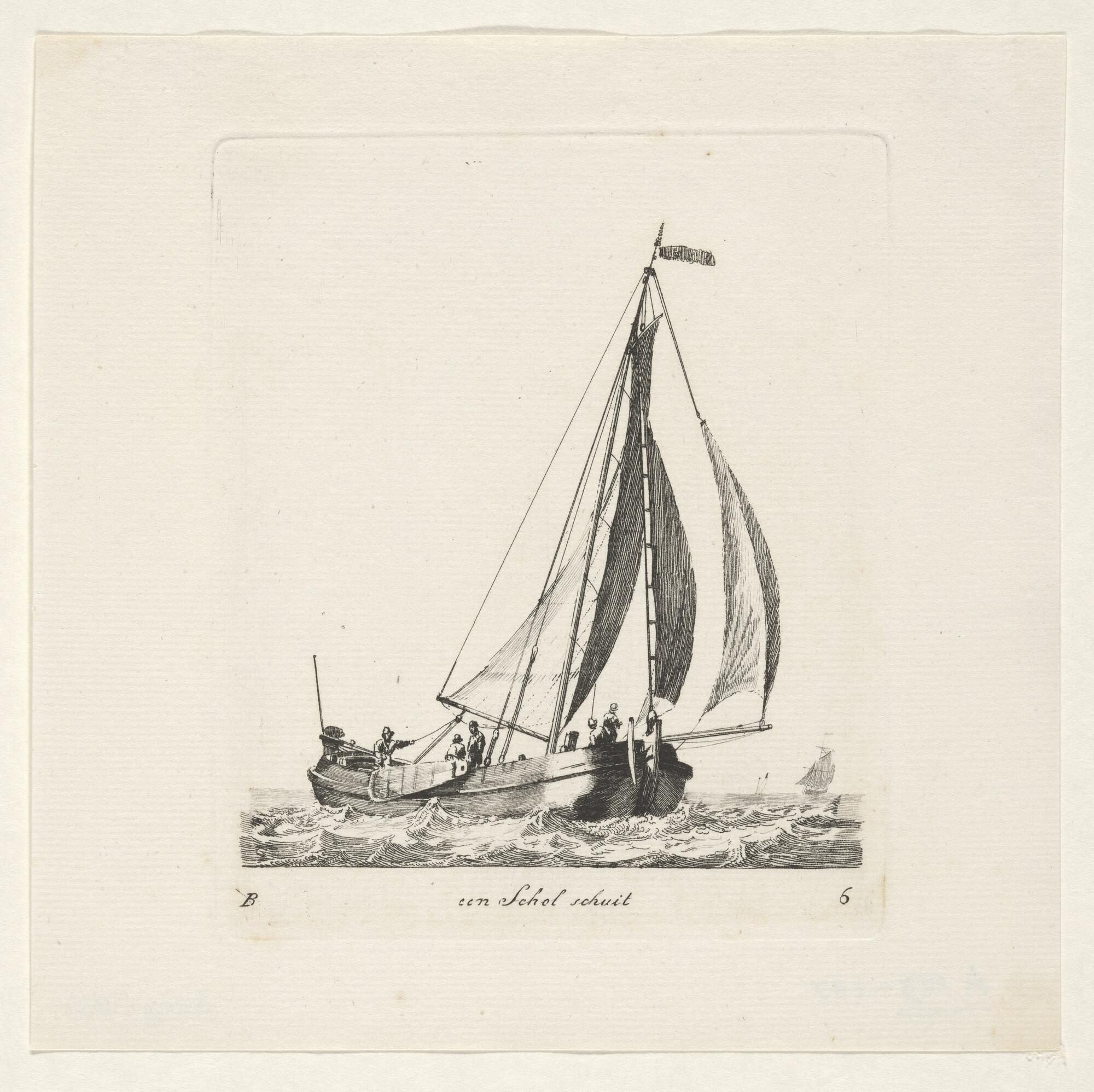 Prent van een scholschuit. Uit de suite "Verscheide soorten van Hollandse vaartuigen", 2de katern, B-6.