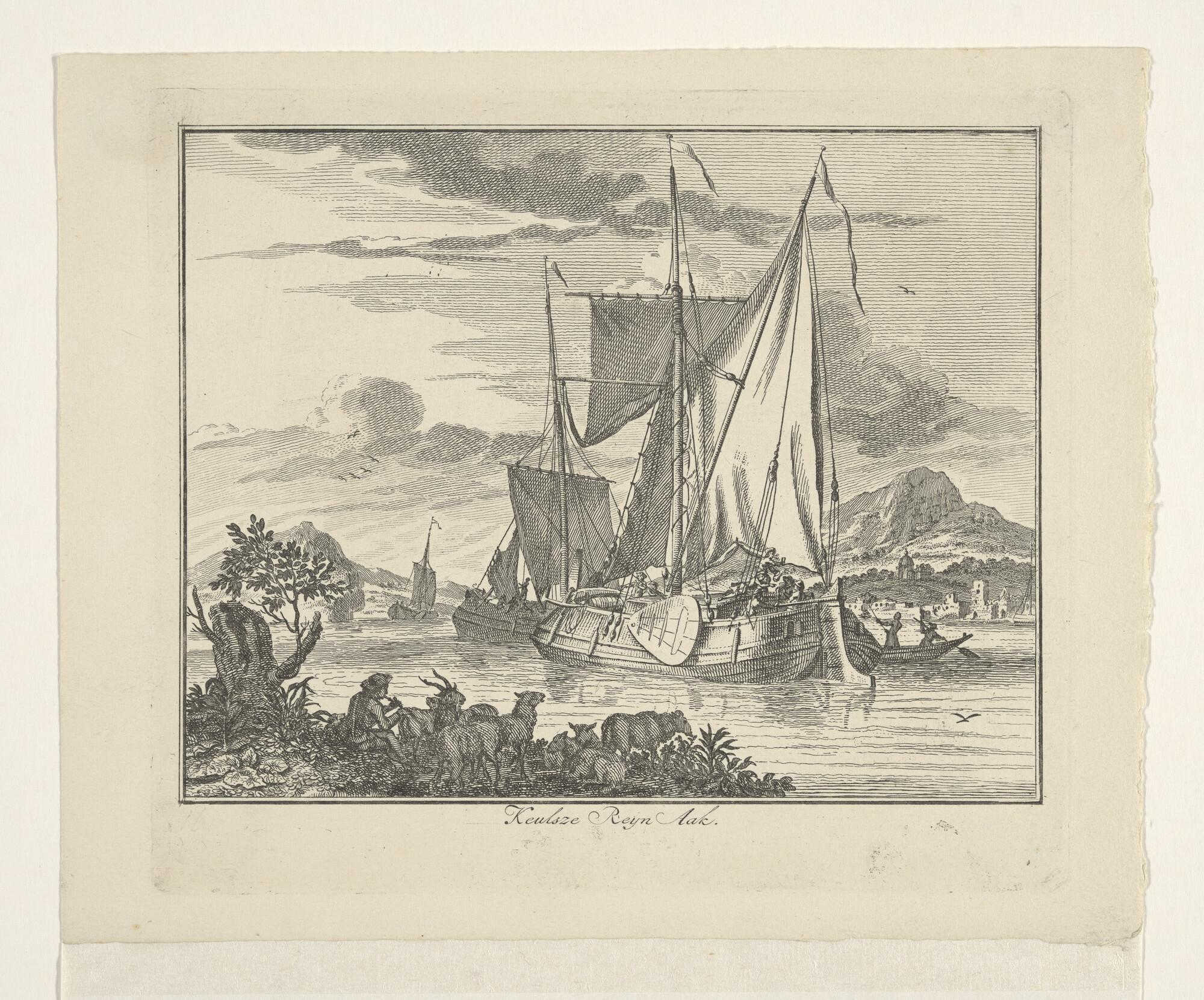 Een Keulse rijnaak, uit een serie afbeeldingen van in- en uitheemse vaartuigen
