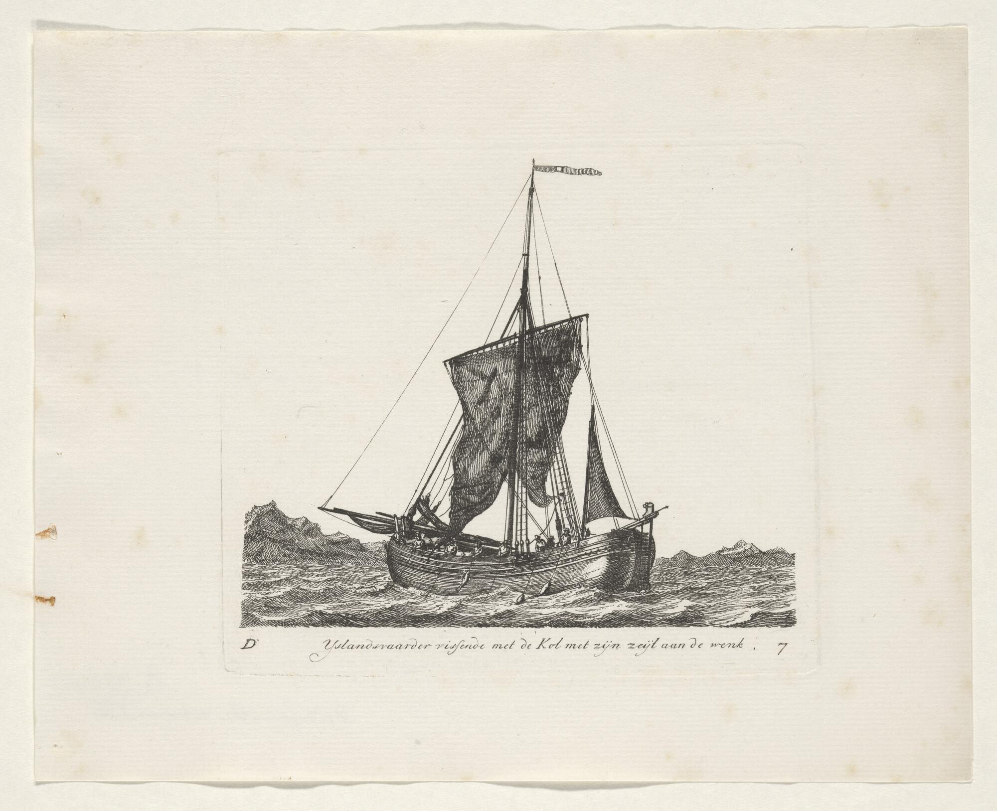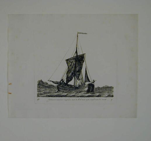 Prent van een hoeker als IJslandvaarder. Uit de suite 'Verscheide soorten van Hollandse schepen', vierde katern, D-7.