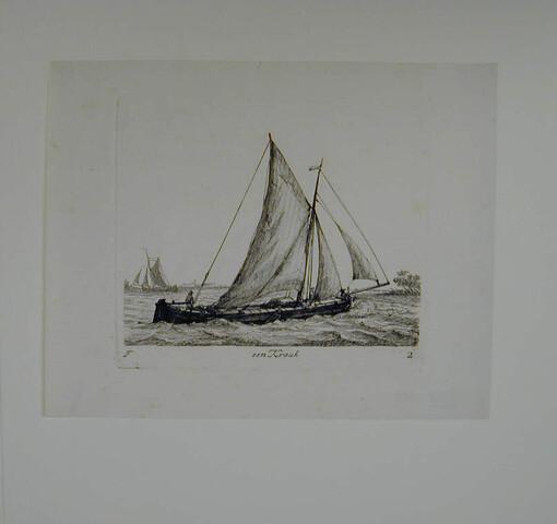 Prent van een kraak. Uit de suite 'Verscheide soorten van Hollandse schepen', zesde katern, F-2.