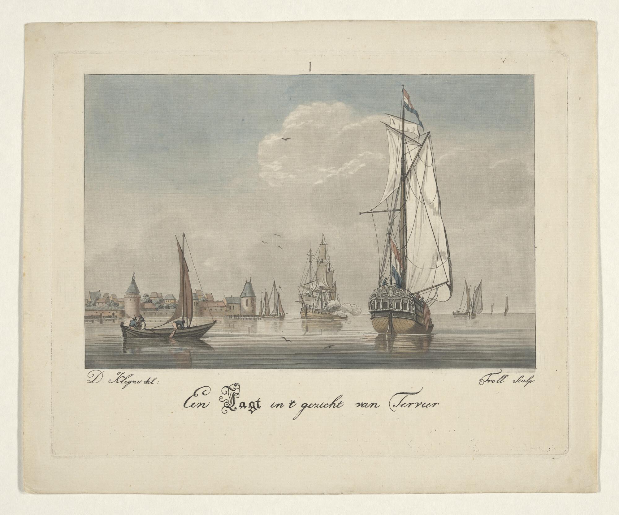 Een paviljoenjacht bij stil weer ter hoogte van Veere.