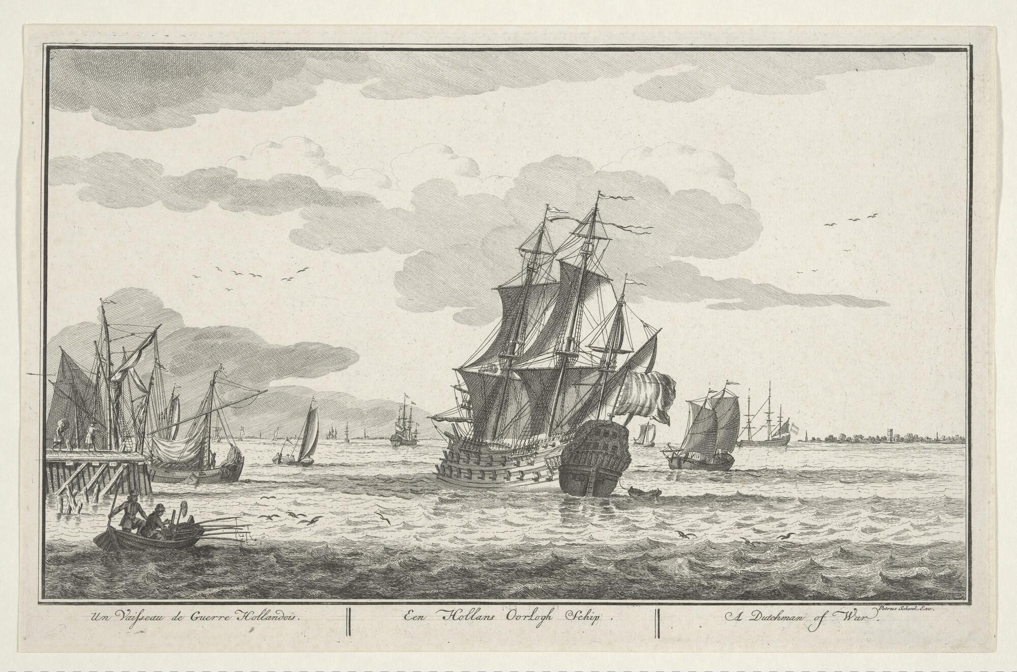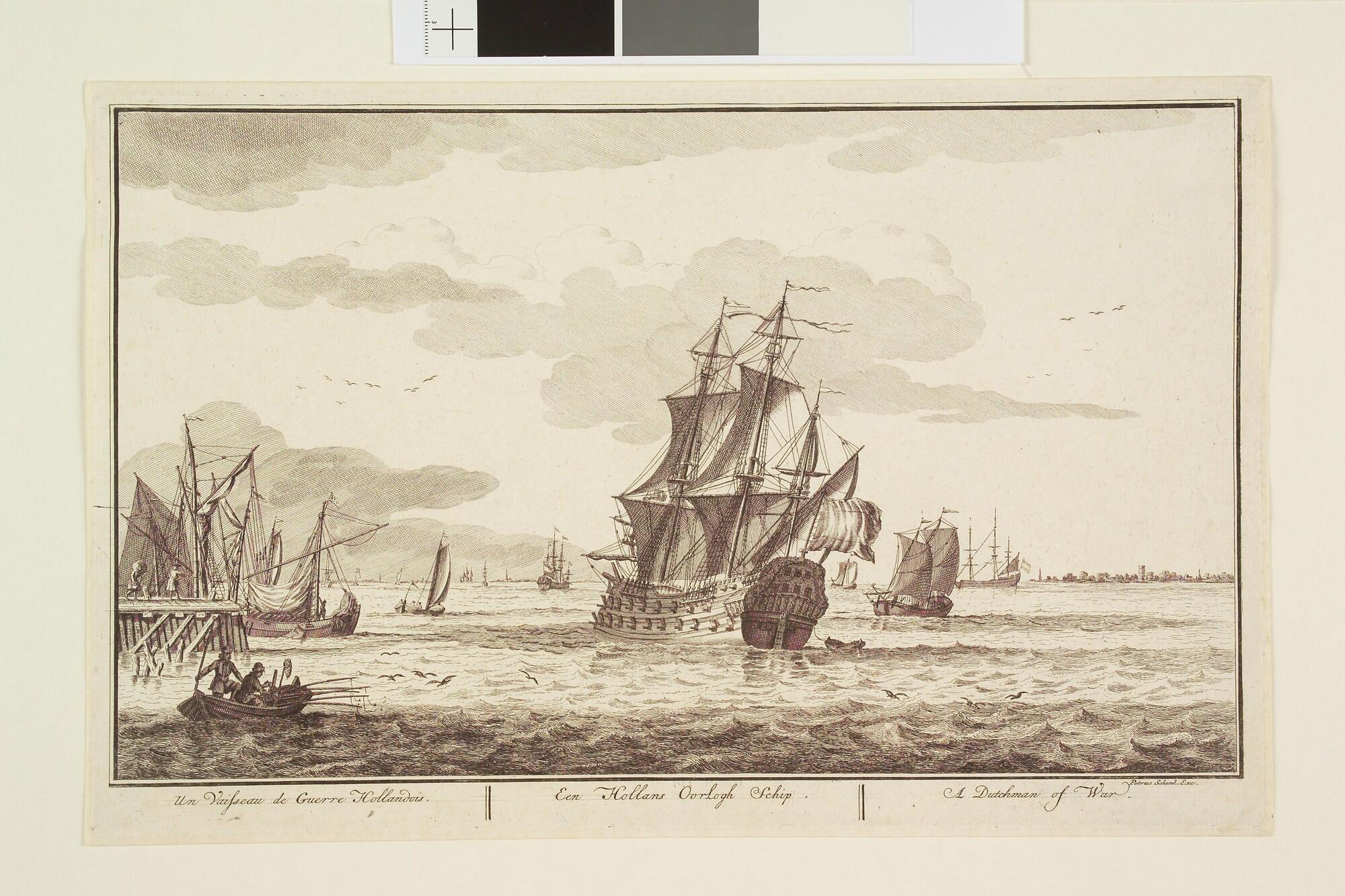 Prent uit de serie "Zee, Land en Stroomlust:een Hollands oorlogsschip.