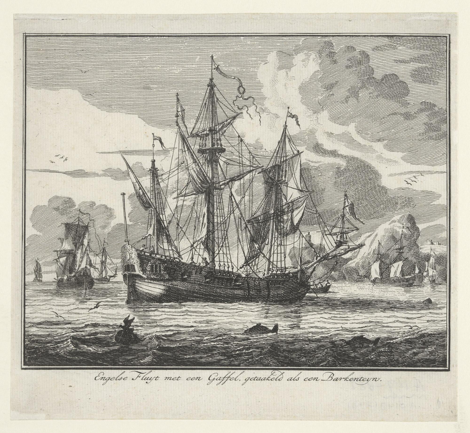 Prent uit een suite van 16 (?) afbeeldingen van in- en uitheemse vaartuigen: een Engels fluitschip.