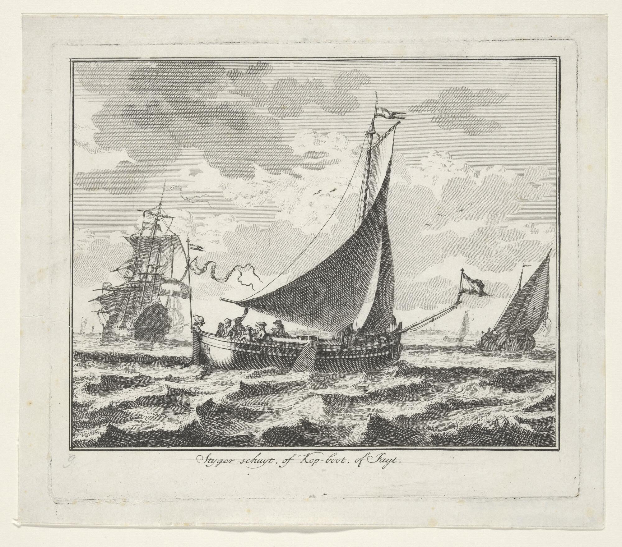 Prent uit een suite van 16 (?) afbeeldingen van in- en uitheemse vaartuigen: een steigerschuit of kopjacht.