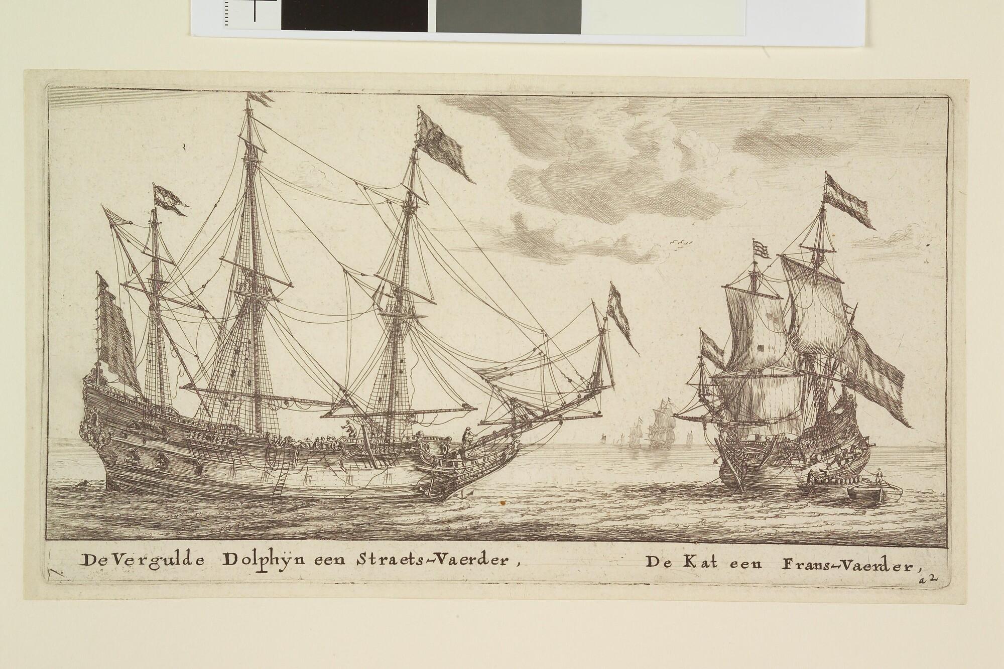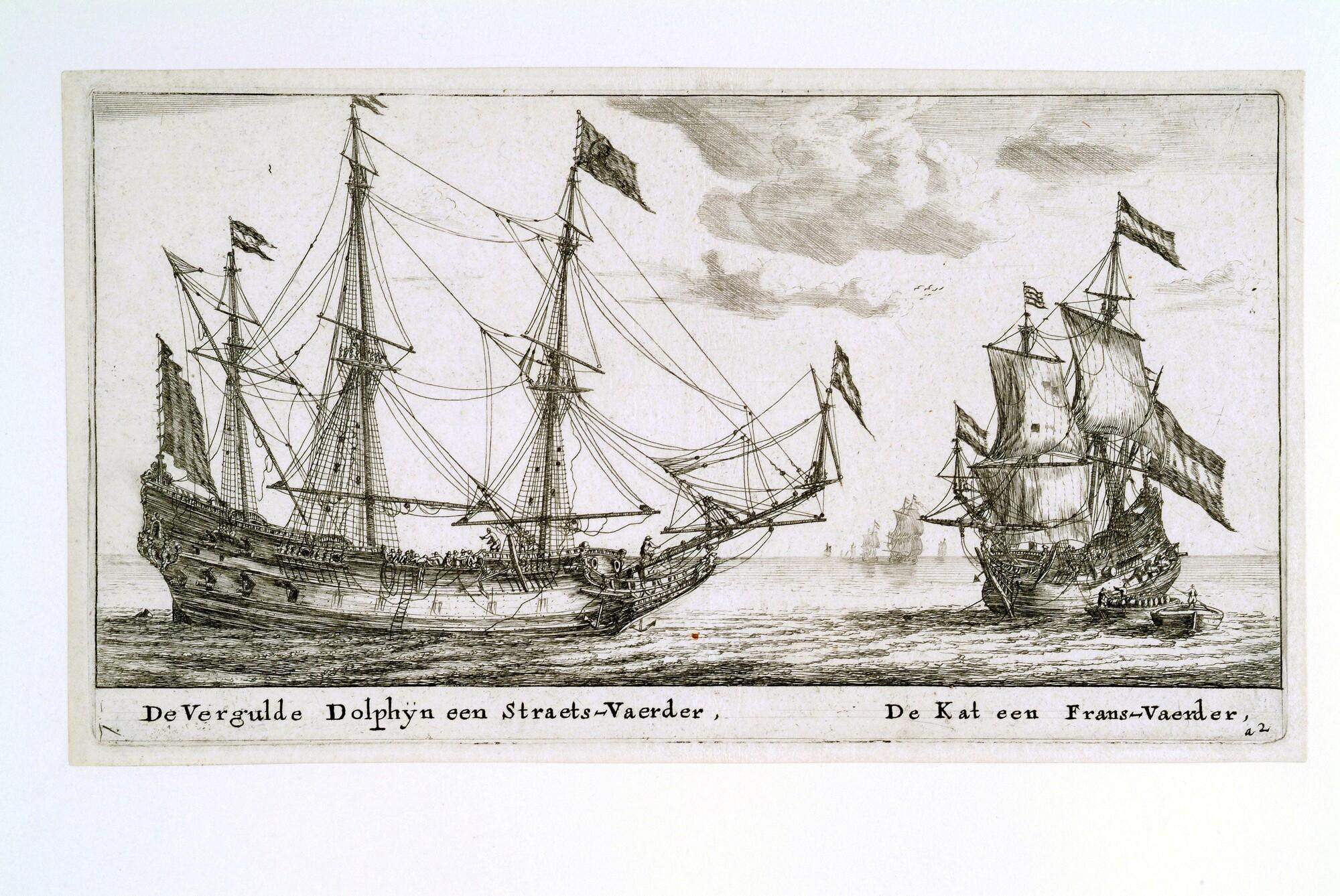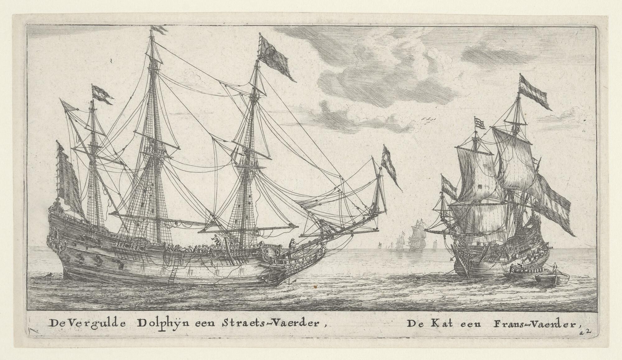 Het pinasschip de Vergulde Dolphijn en het fluitschip de Kat.
