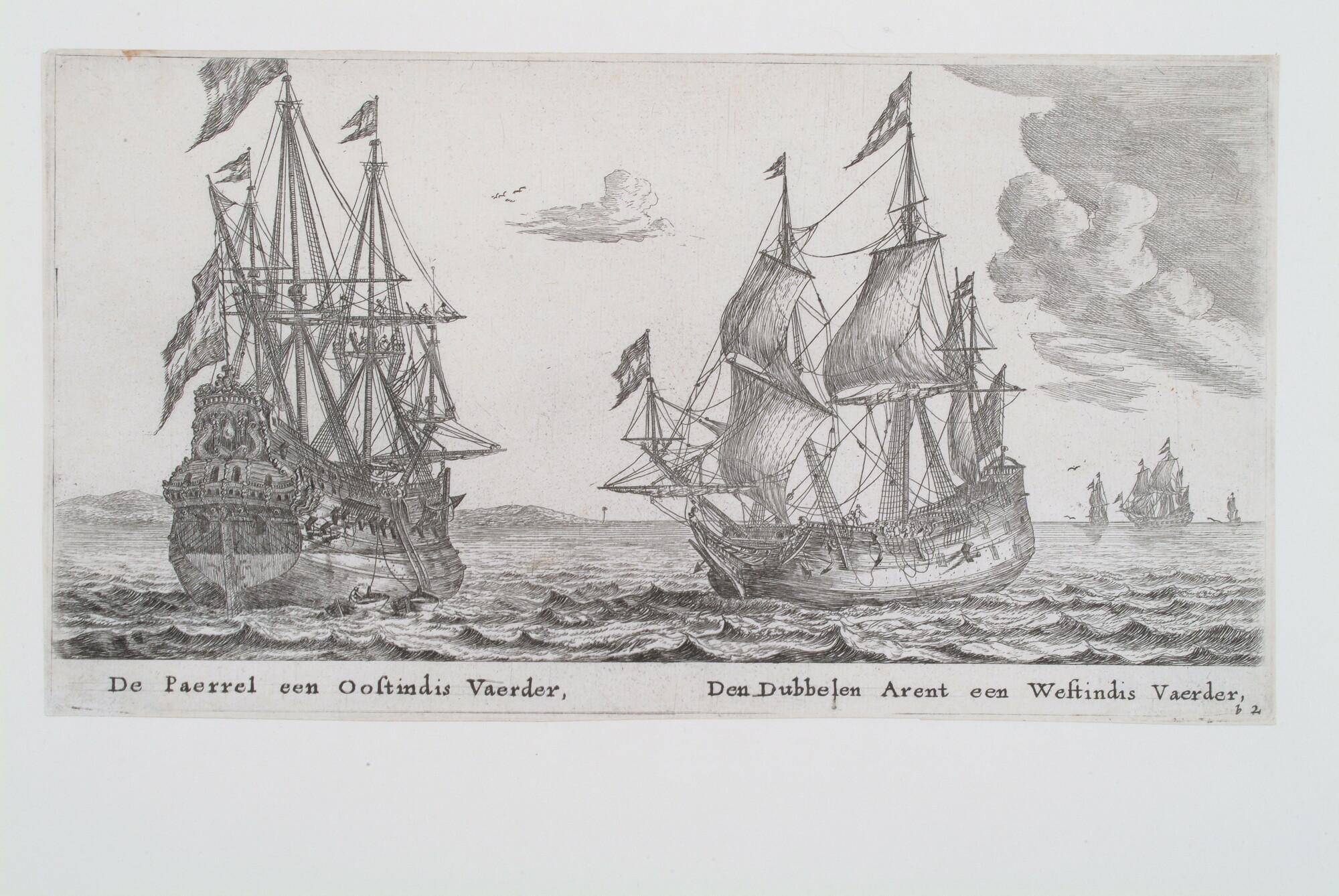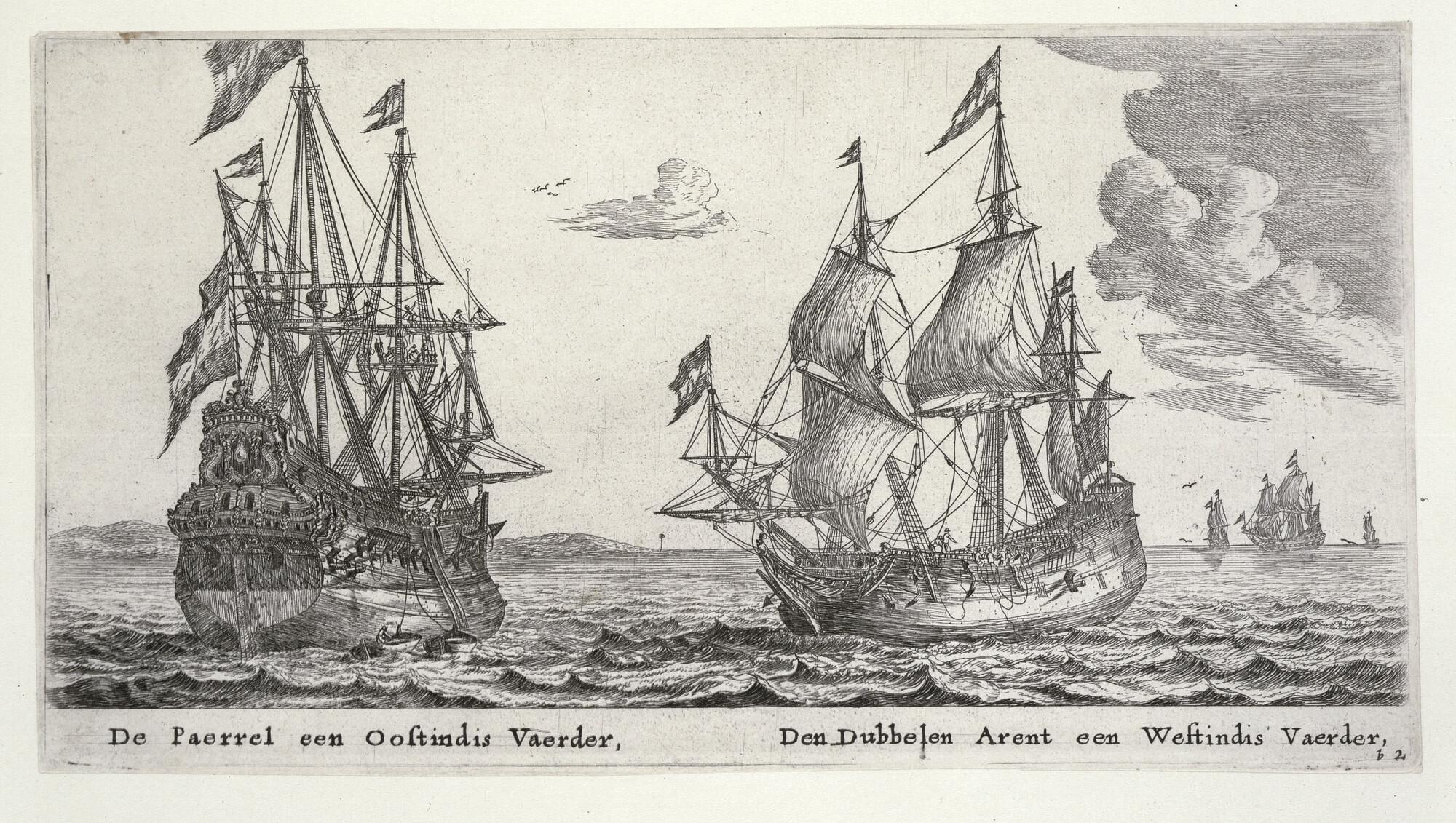 Het retourschip 'Parel' en de Westindiëvaarder 'Dubbele Arend'