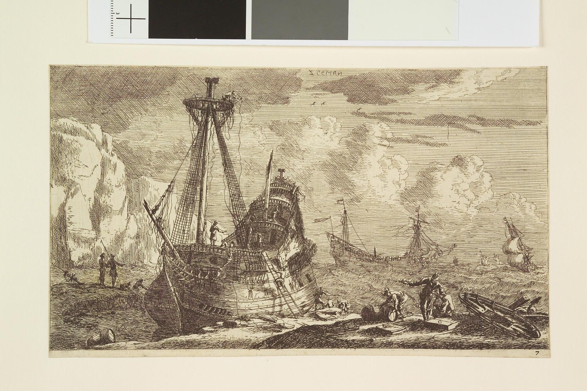 Schepen met averij voor de kust.