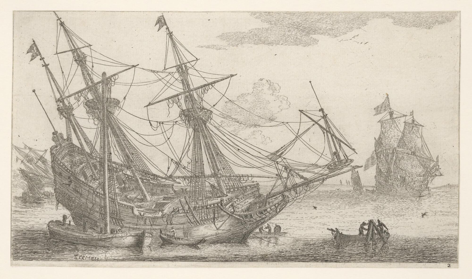 Het kielen van een driemaster.