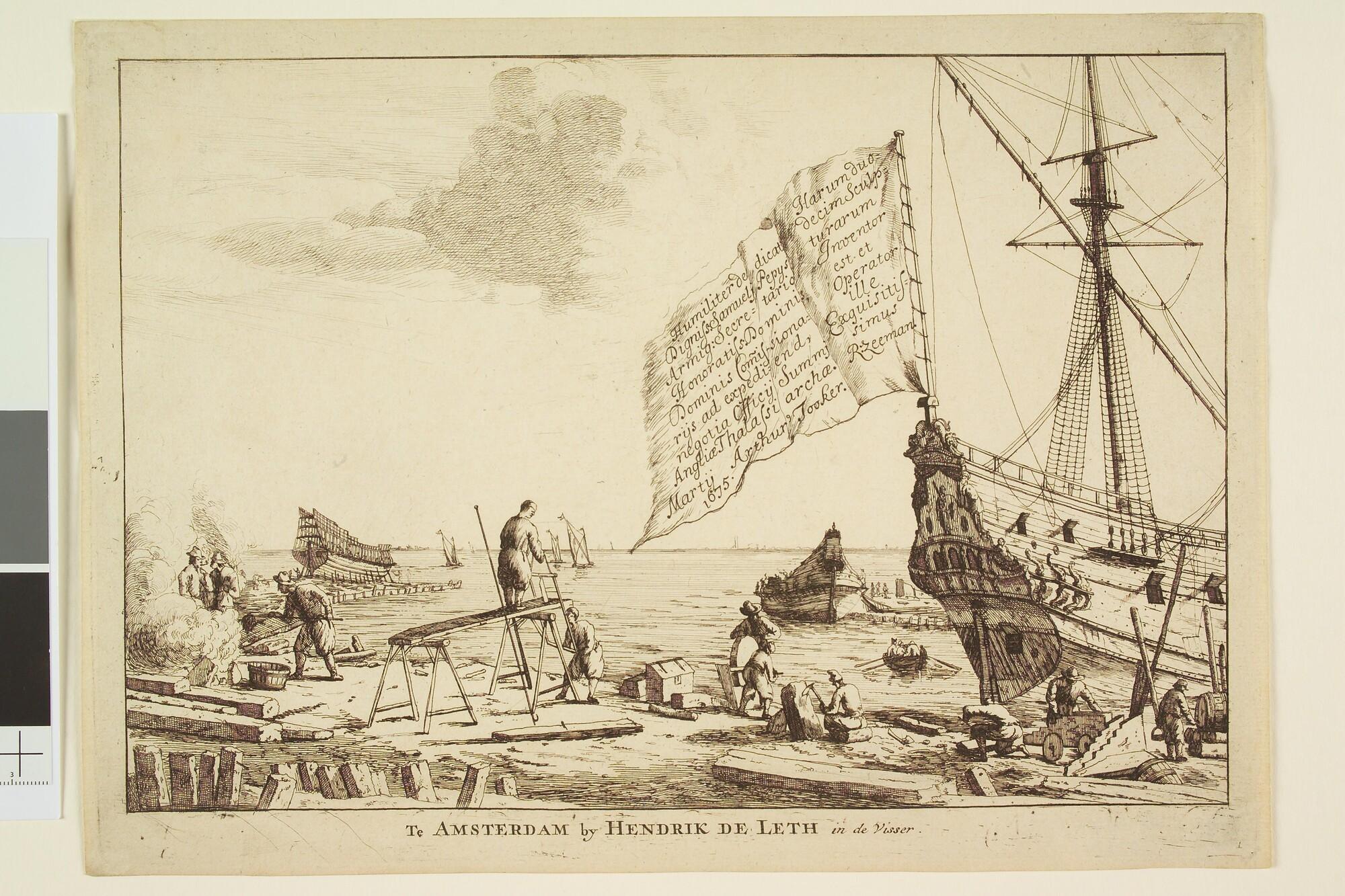 Prent/ titelblad 'Te Amsterdam by Hendrik de Leth in de Visser'.