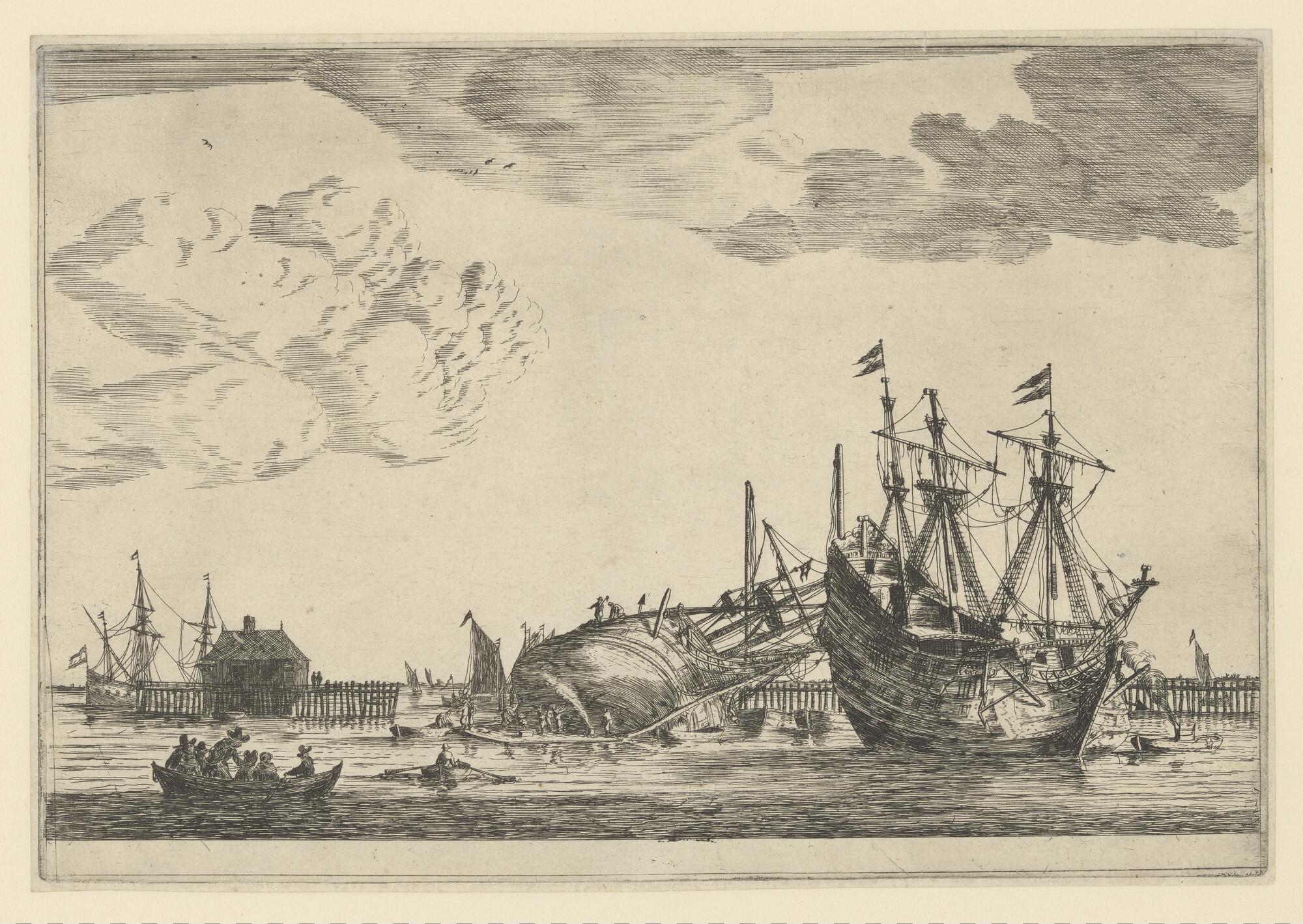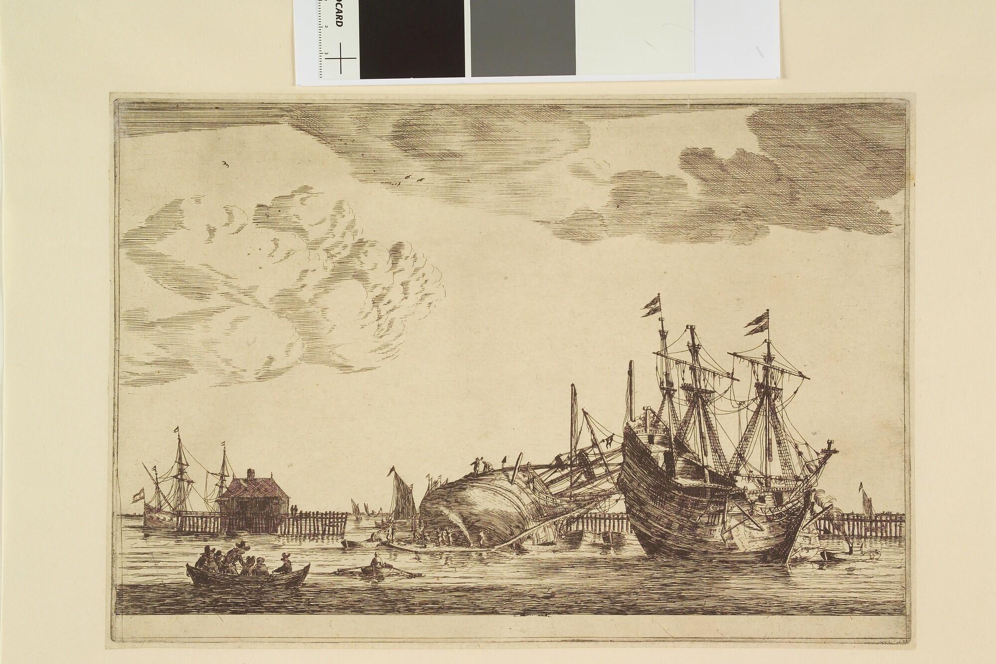 Het kalfaten van een schip in de Amsterdamse haven.