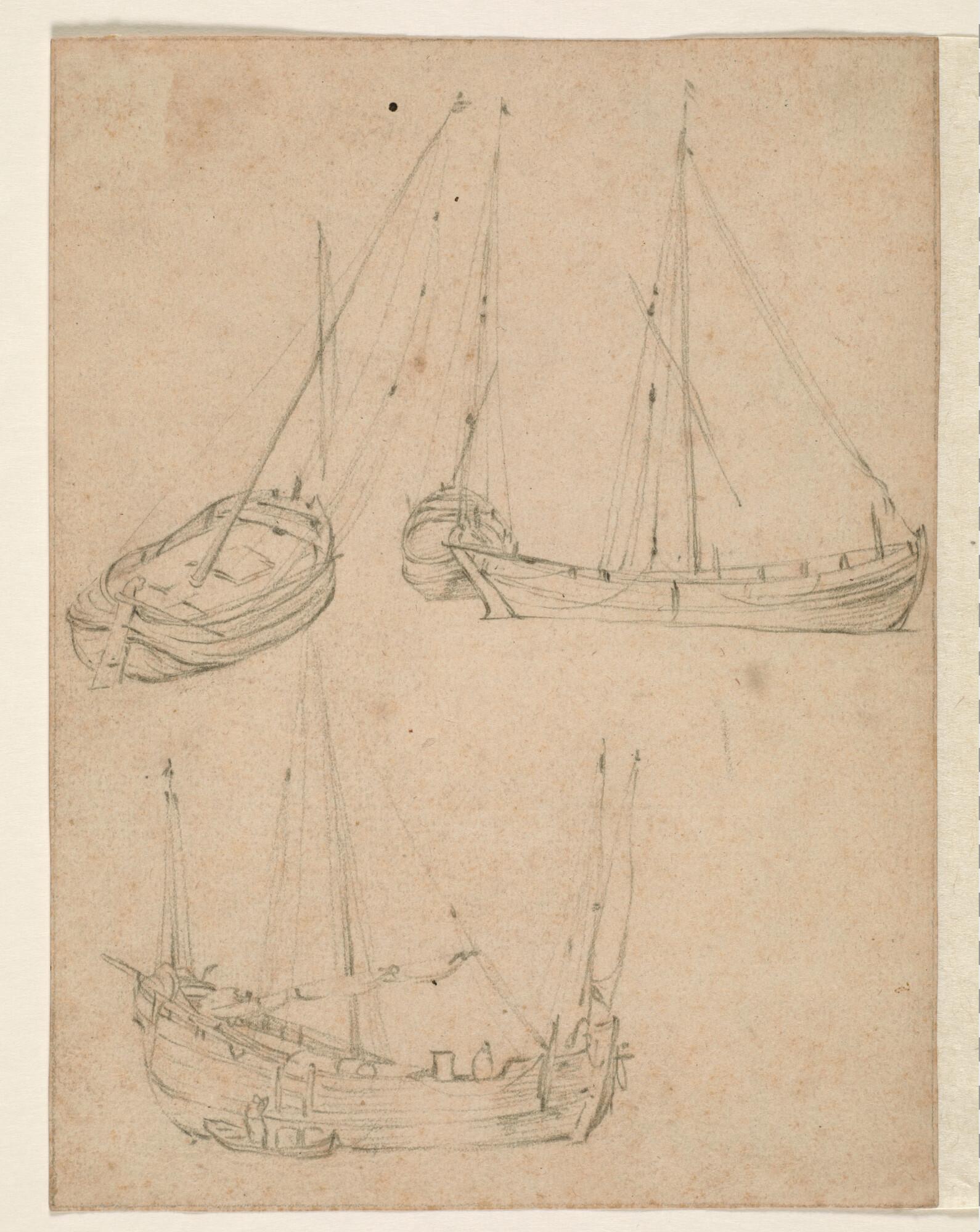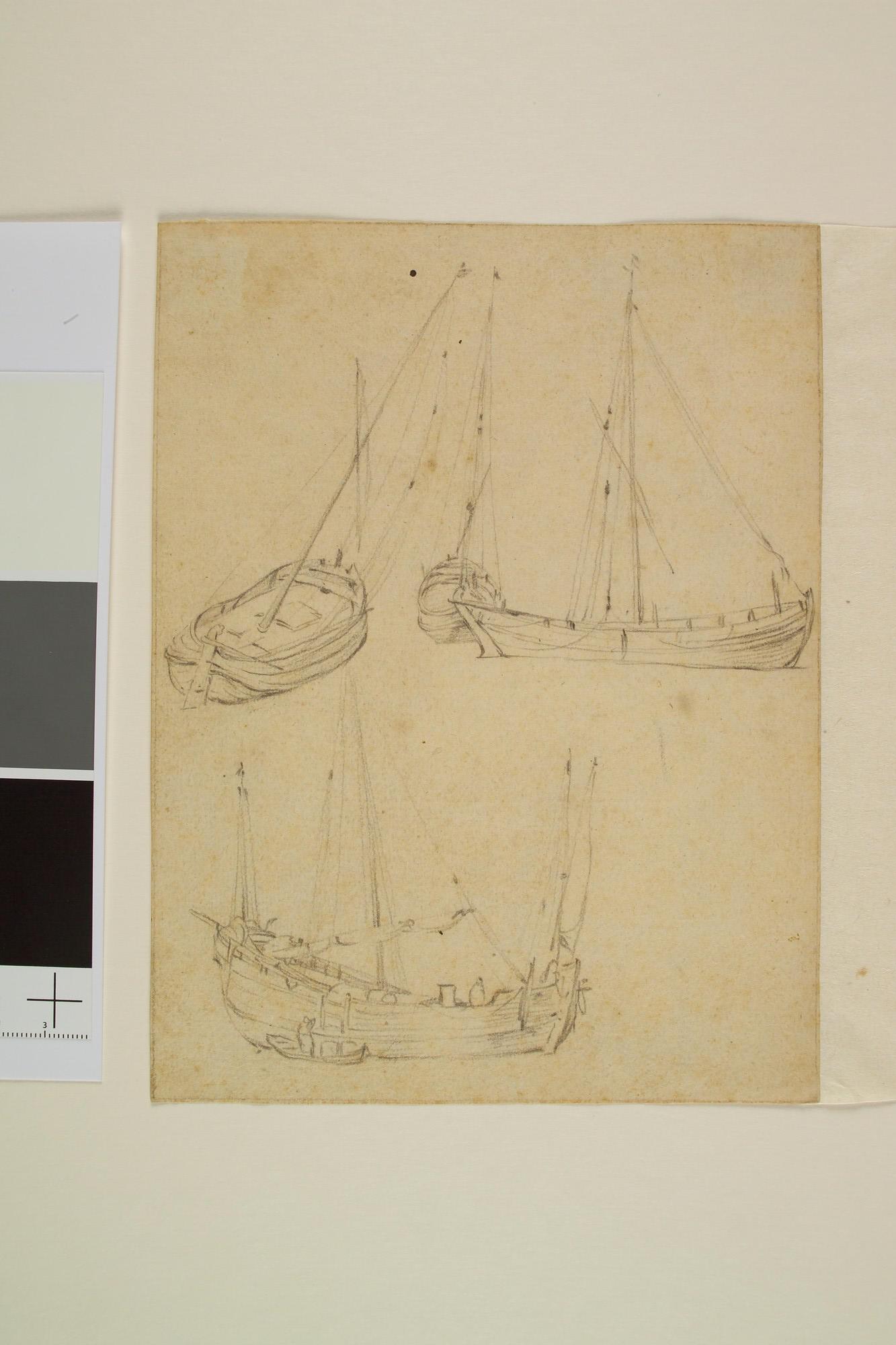 Schetsblad met vier kleine schepen, waaronder een haringbuis