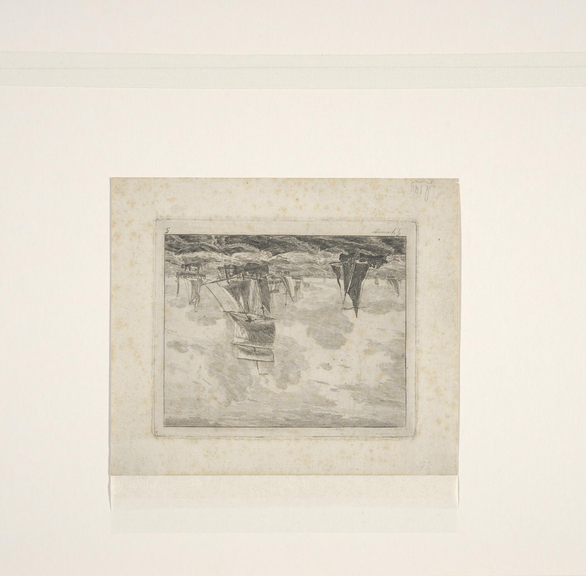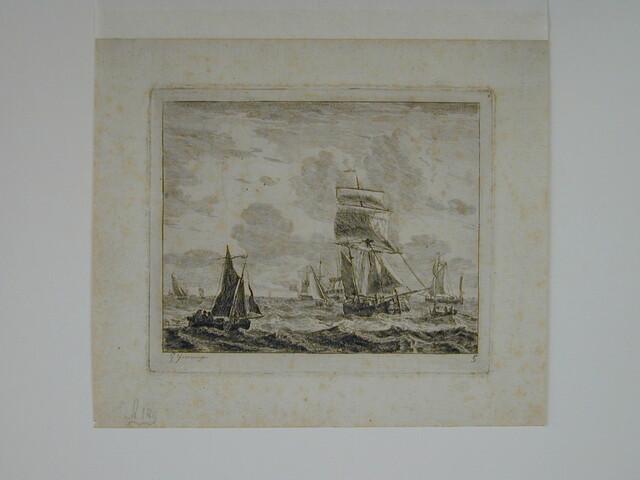 Een riviergezicht, met een hoeker gezien van bakboordzijde