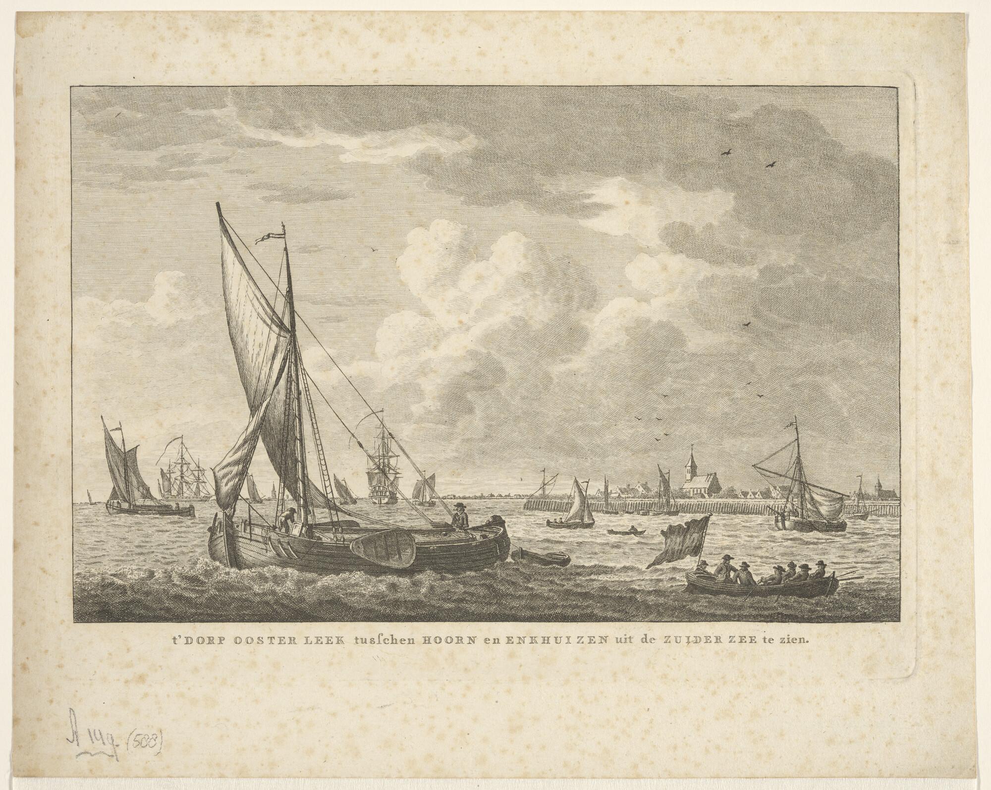 Het dorp Oosterleek tussen Hoorn en Enkhuizen vanaf de Zuiderzee gezien.