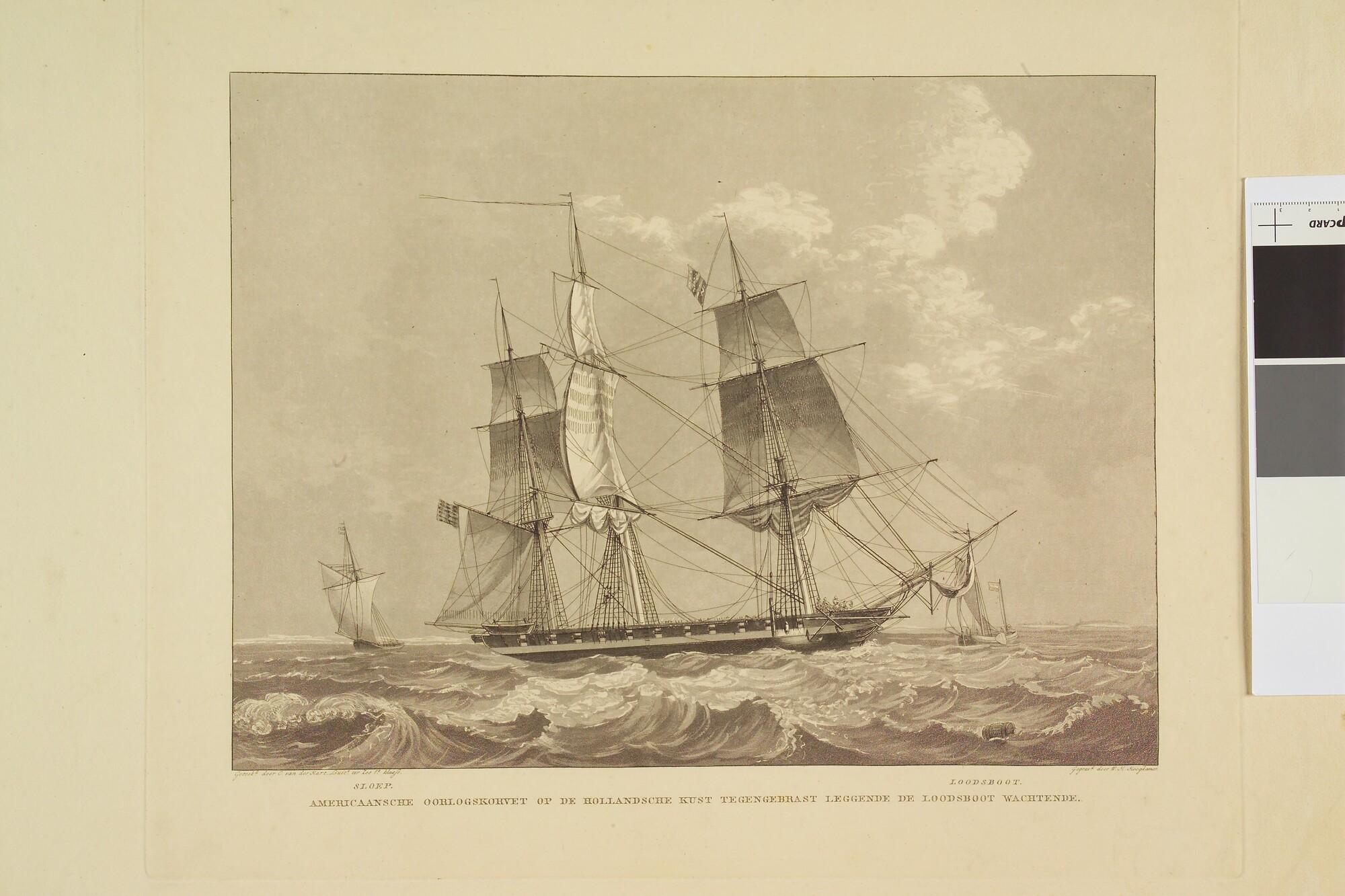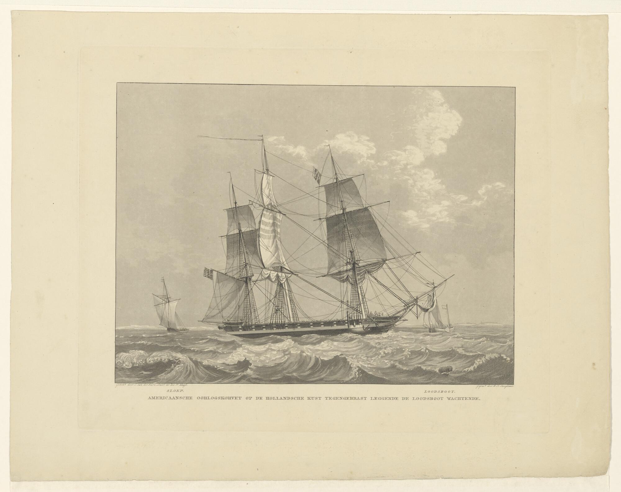 Een Amerikaans oorlogskorvet voor de Nederlandse kust