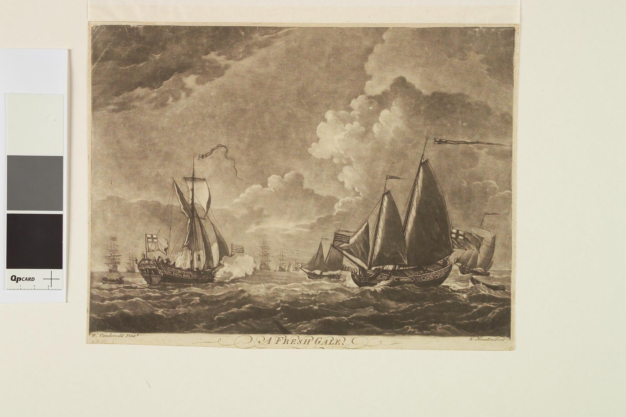 Engelse en andere buitenlandse schepen, prent naar een olieverfschilderij van Willem van de Velde de Jonge.
