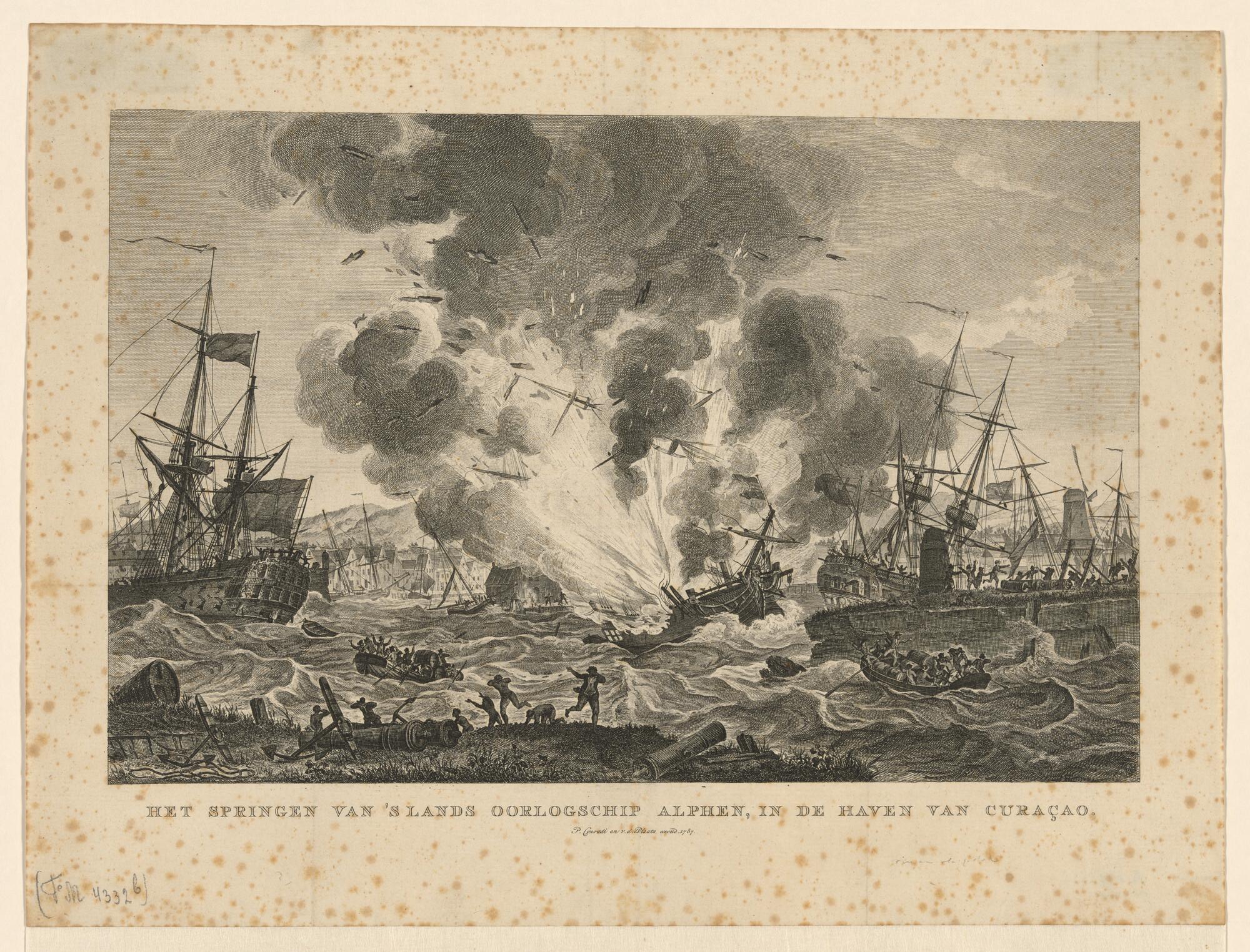 Het in de lucht springen van het oorlogsschip Alphen in de haven van Curaçao op 15 september 1778.