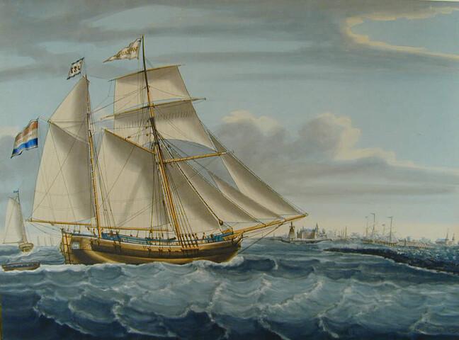 Het schoenerkofschip "Vrouw Geertje van Purmerendt" op de rede van Medemblik.