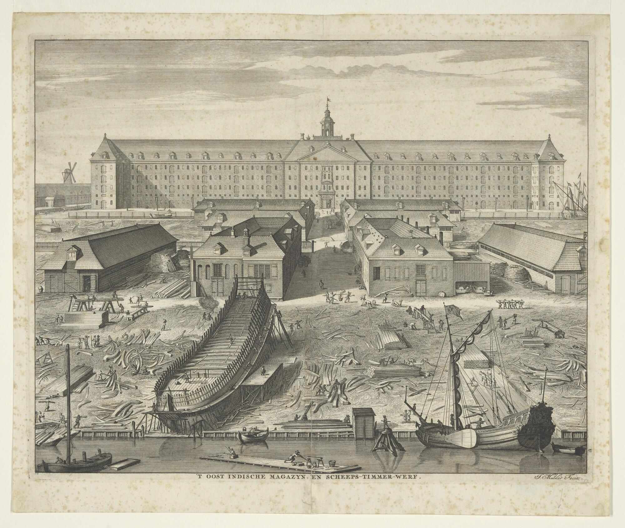 Het Oostindisch Zeemagazijn en de scheepstimmerwerf.