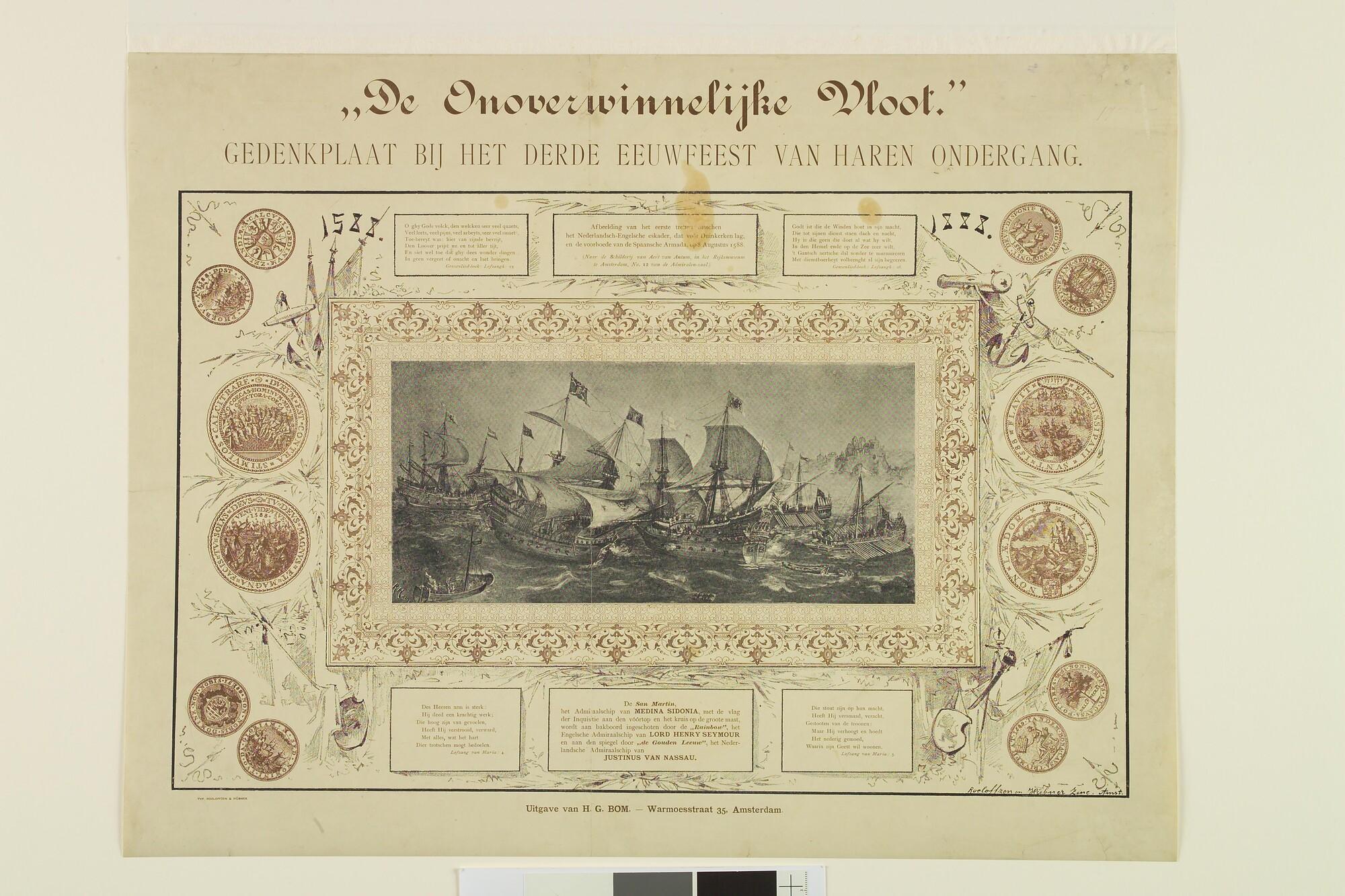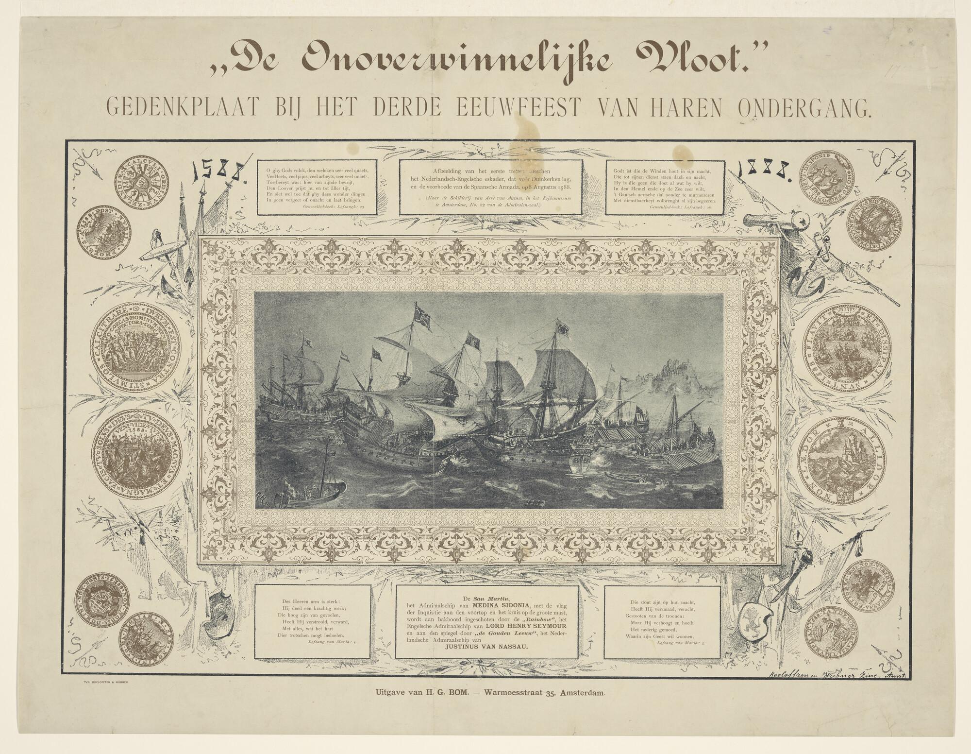 "De onoverwinnelijke Vloot"; gedenkplaat bij het derde eeuwfeest van haren ondergang.