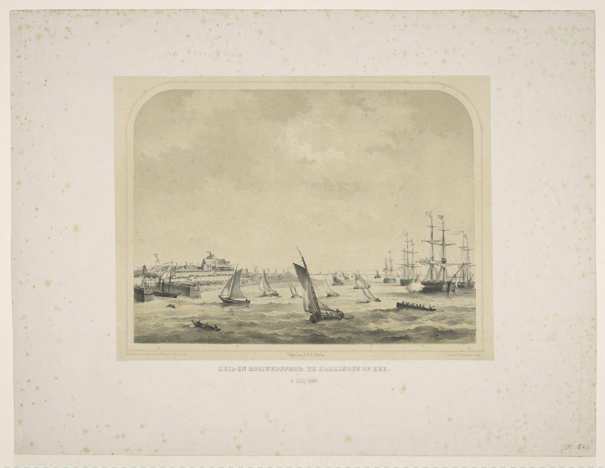 Zeil- en roeiwedstrijd op zee bij Harlingen, 4 juli 1860
