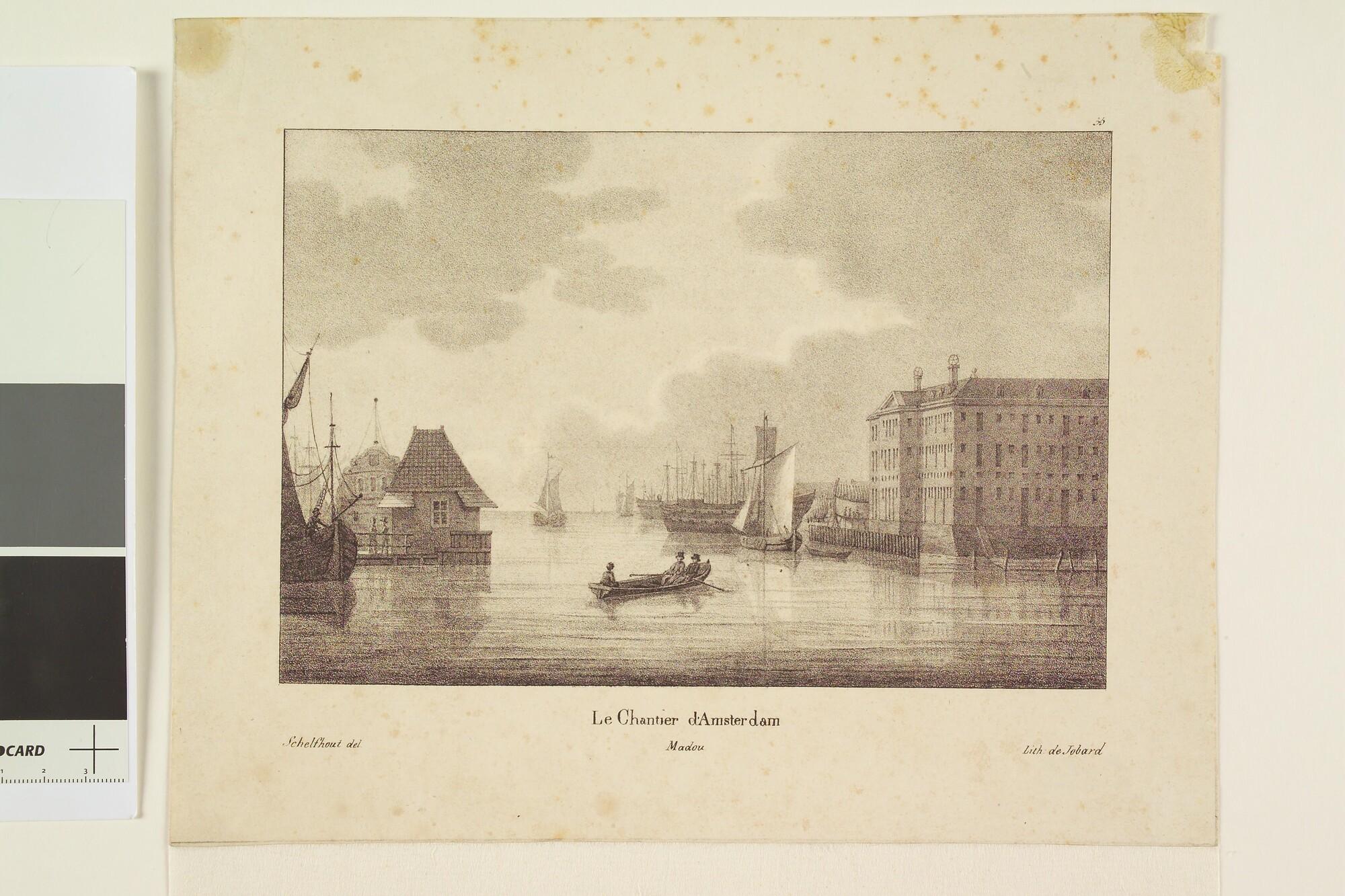 Gezicht op het Zeemagazijn en de marinewerf te Amsterdam