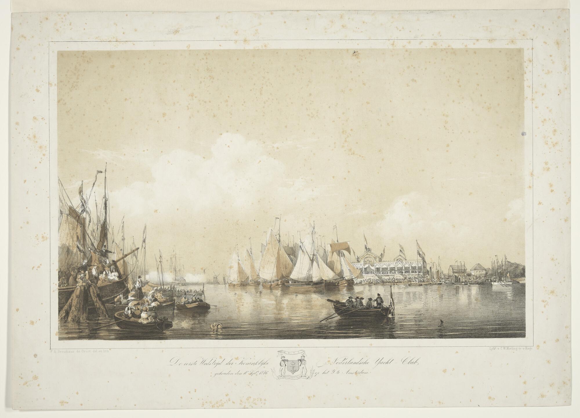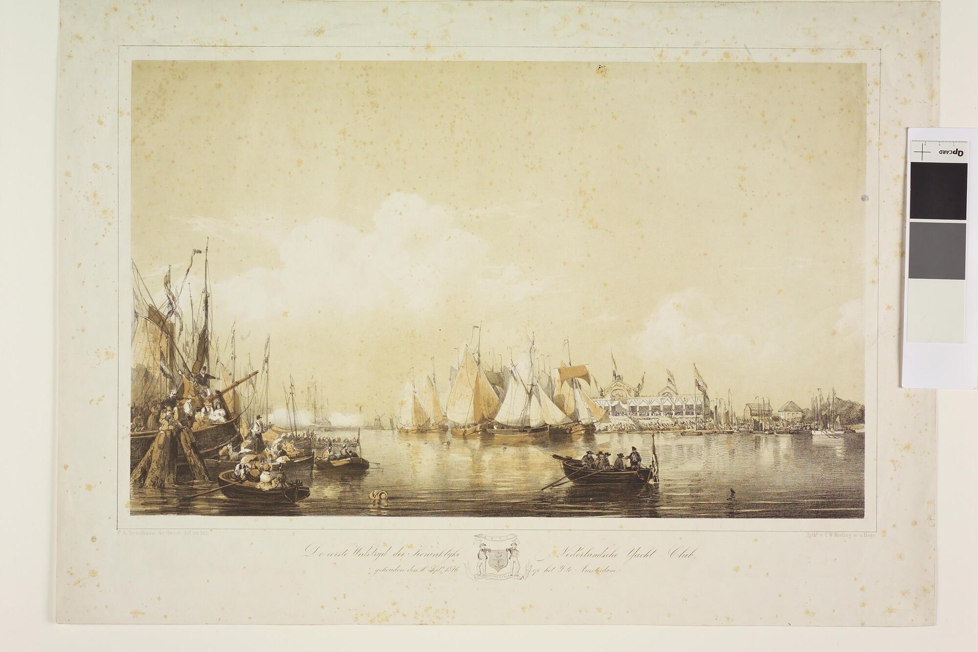 Eerste zeilwedstrijd van de Koninklijke Nederlandse Yacht Club op het IJ te Amsterdam op 10 september 1846.