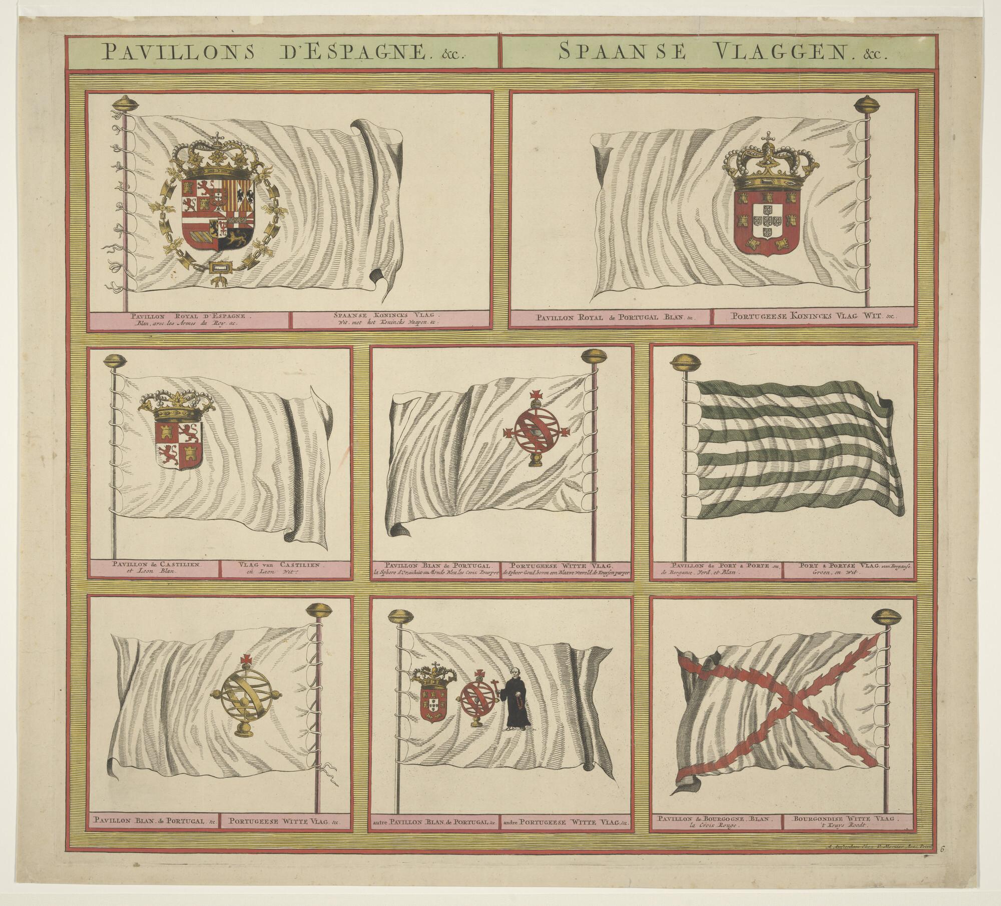 Vlaggenkaart met 8 afbeeldingen van vlaggen uit een serie van 12 bladen. Genummerd nummer 6.