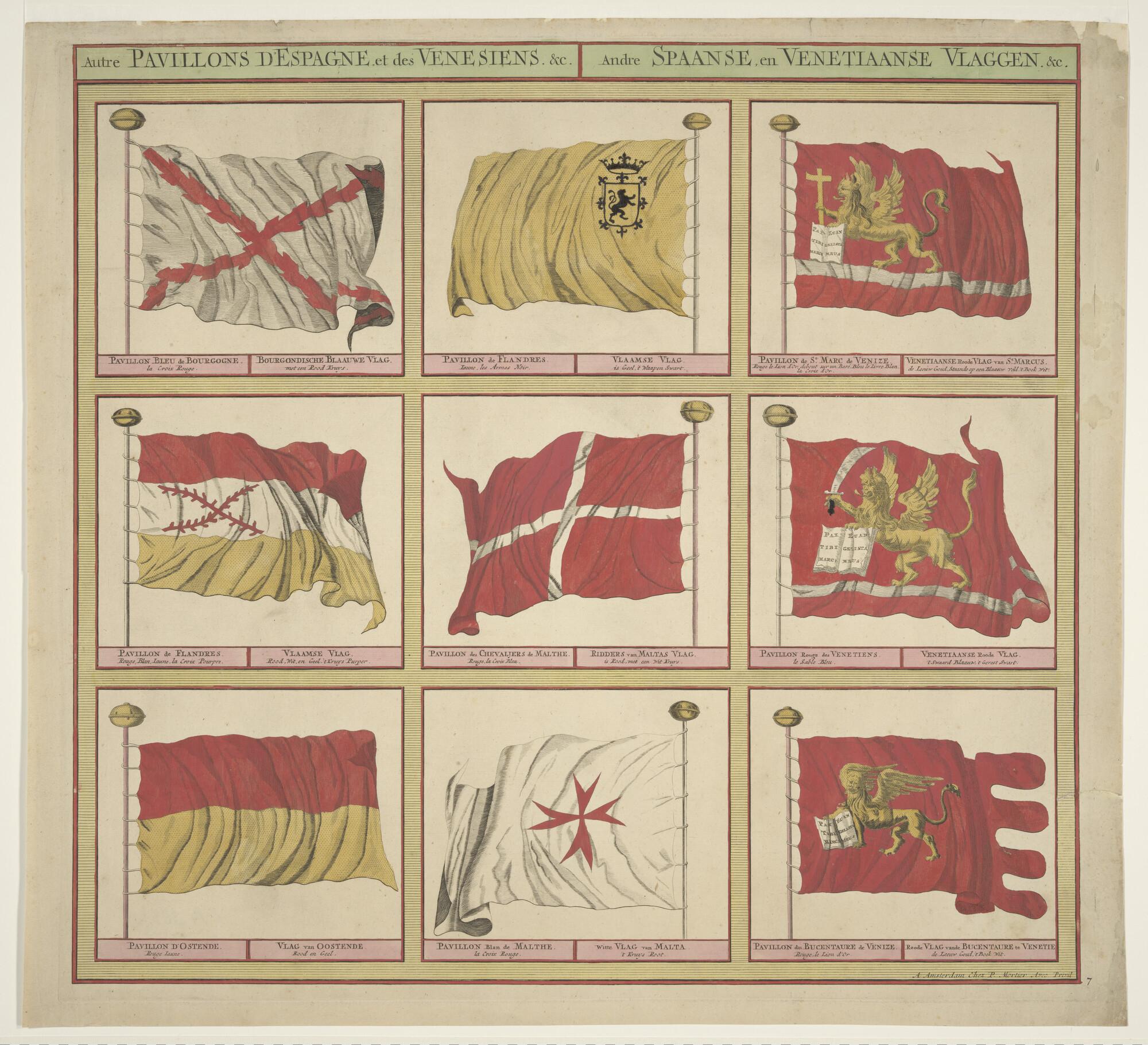Vlaggenkaart met 8 afbeeldingen van vlaggen uit een serie van 12 bladen. Genummerd nummer 7.