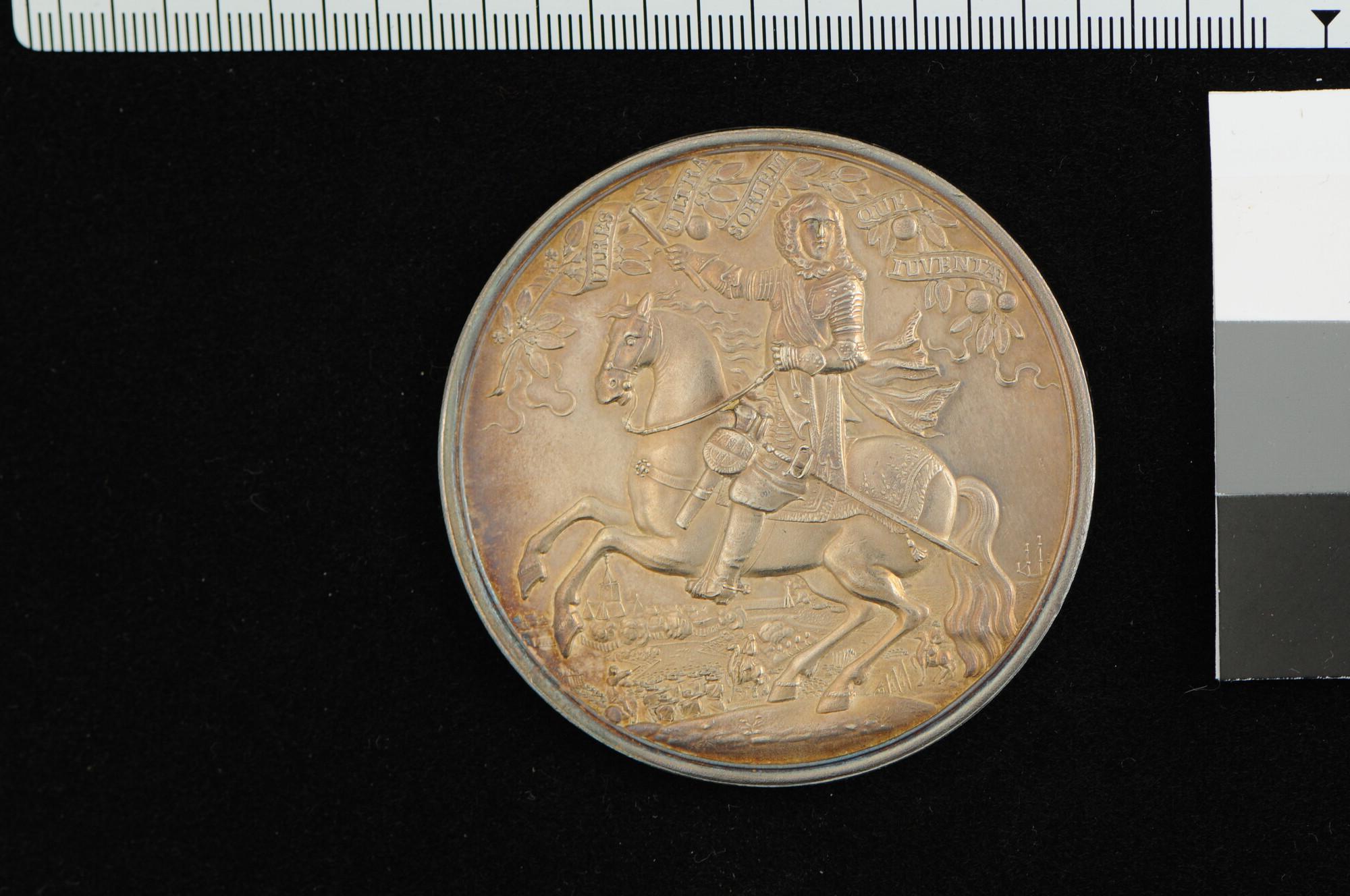 Penning op het sluiten van de Vrede van Westminster met Engeland en de inname van Naarden door Willem III, 1674