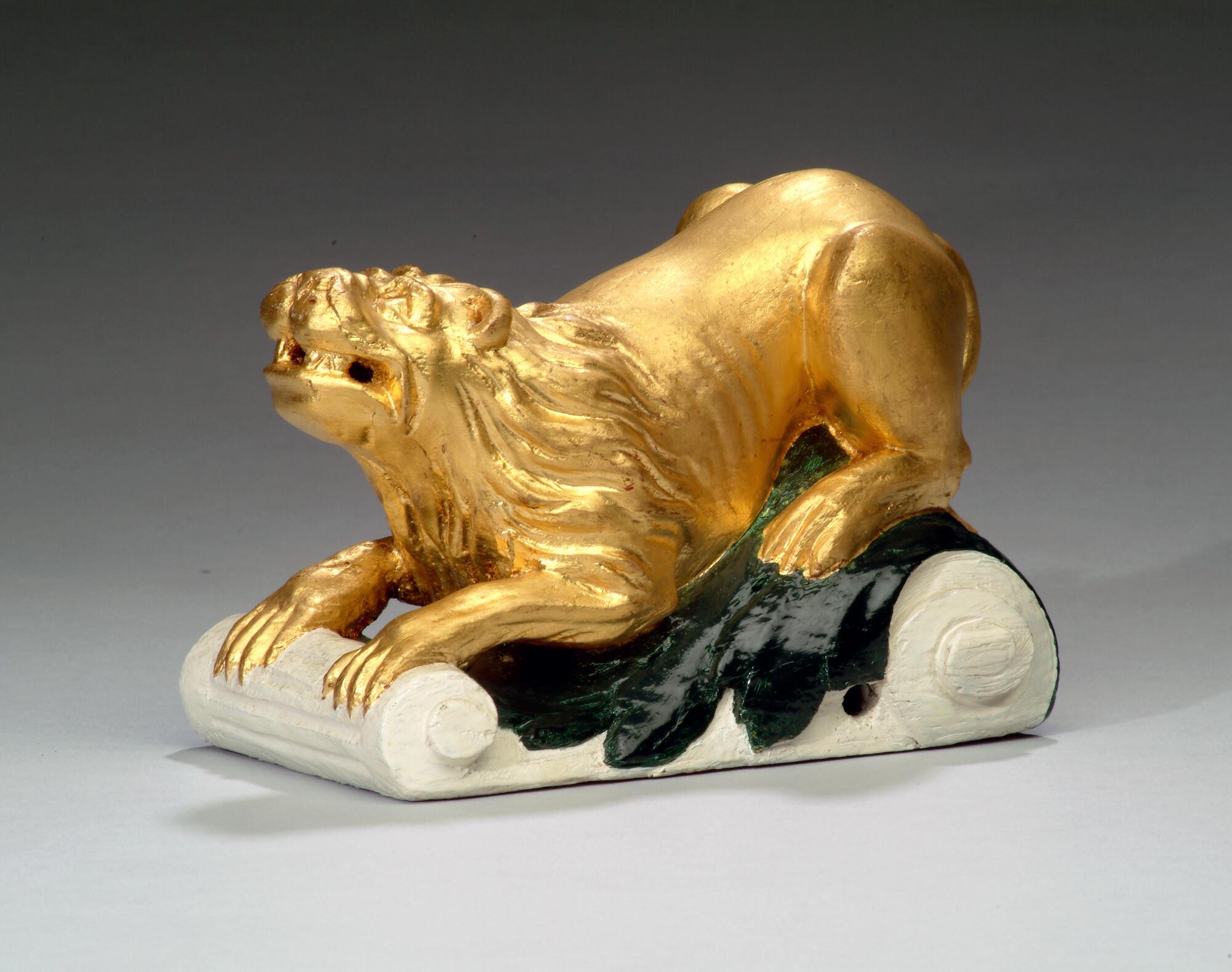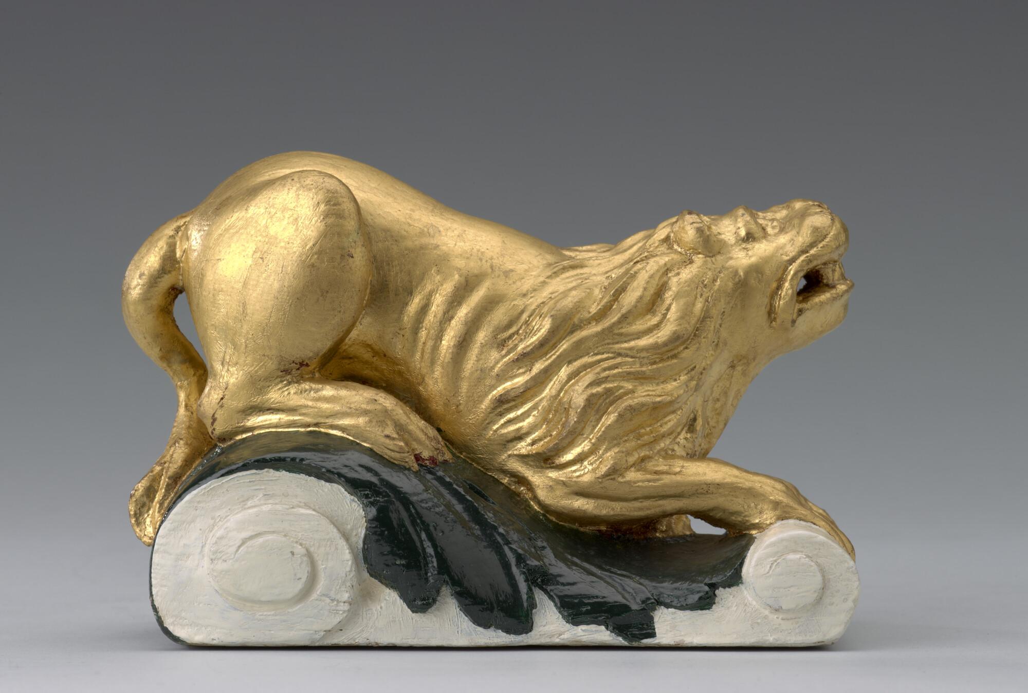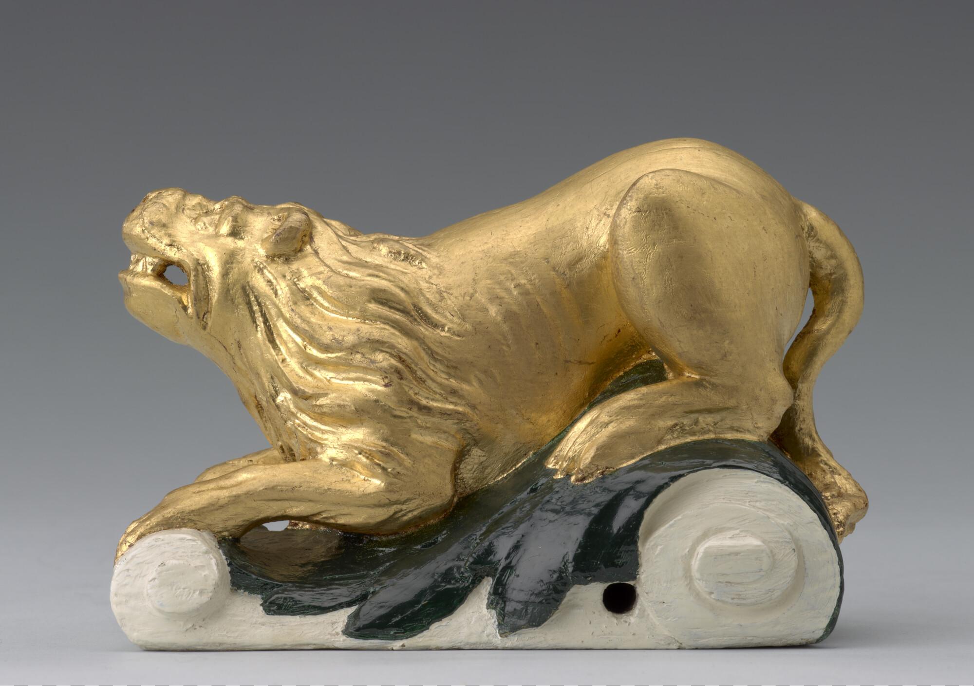 Roerkop, voorstellend een gouden leeuwtje