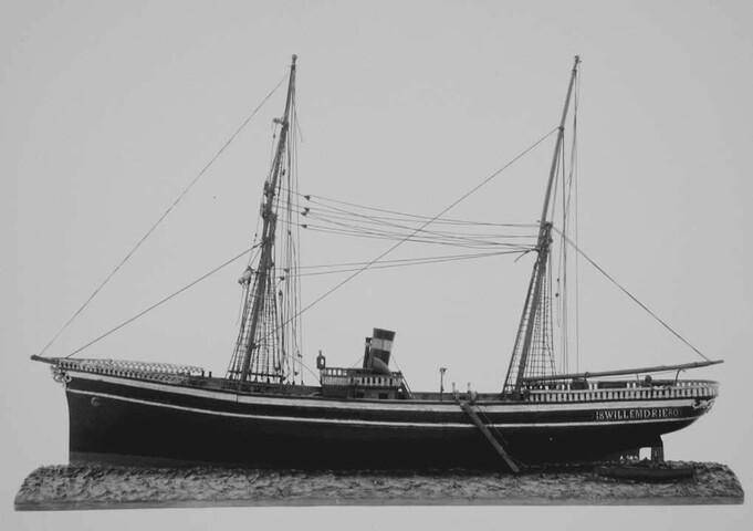 Model van het zeilstoomschip Willem Drie
